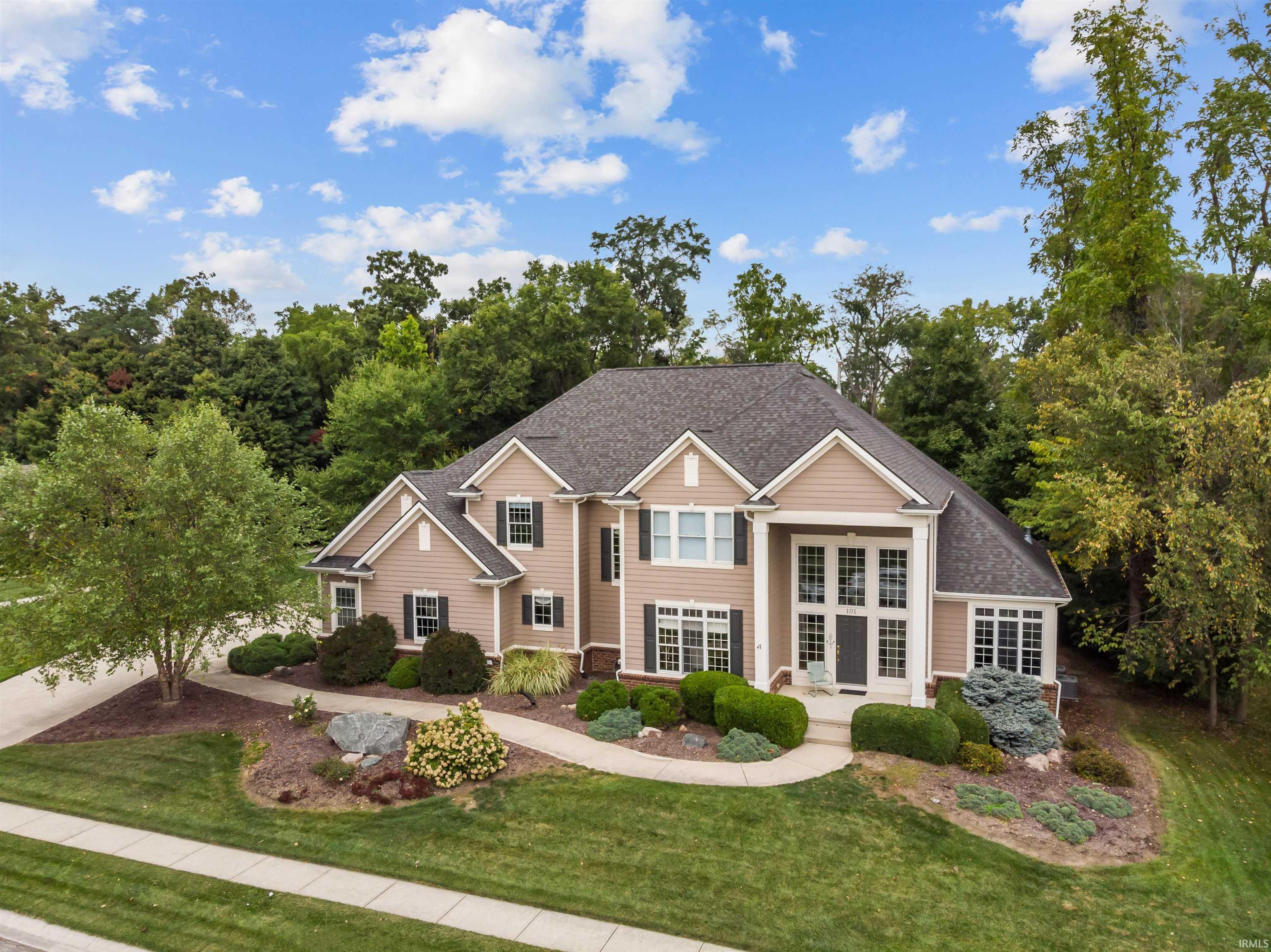 Check out this impressive home on well over a half acre in the popular Bluffs of Twin Eagles. Experience nature everyday in your backyard! This 4 bedroom/5 bath home has so much to offer. Large kitchen with quartz countertops and a good-sized island. All kitchen appliances stay including the double ovens. Open floor plan with large windows throughout. Spend your mornings in the sunroom overlooking the secluded back yard with large pond. Dual staircases lead up to the upstairs bedrooms with a bathroom attached to each. Master bath en suite featuring a jetted tub and large walk in closet.The daylight basement has large windows allowing a good amount of light along with a wet bar and plenty of room for entertaining. Recent updates include tankless hot water heater and two new air conditioner units. Oversized garage. Enjoy the outdoor space with loads of wildlife and nature type views overlooking the pond. Hop on the trail to a charming bridge walk leading to the association pool and tennis courts. Northwest Allen County School District. This home has so much to offer...be sure to schedule your showing today!!