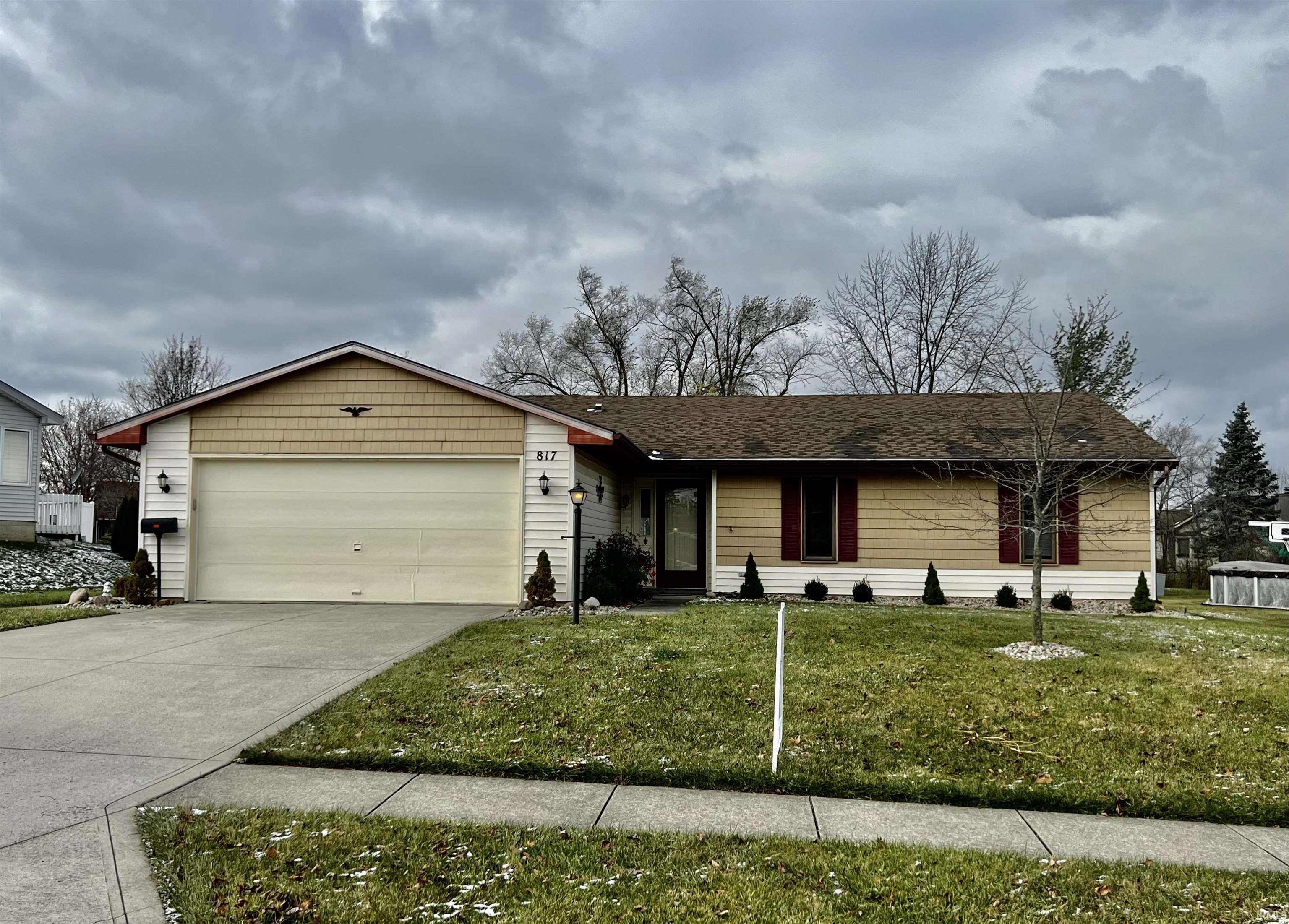 Great opportunity walking distance to all schools and easy access to Glenbrook and Downtown along with I-69 interchange. Open concepts cathedral ceiling Great Room with enclosed rear porch. Ready for your personal touches. Upgraded front exterior. Newer HVAC. Some newer flooring. All appliances stay AS-IS. Seller providing funds for 1 year home warranty at closing. Rare Mud Room with separate outside access. Pantry. Custom Stone corner fireplace.