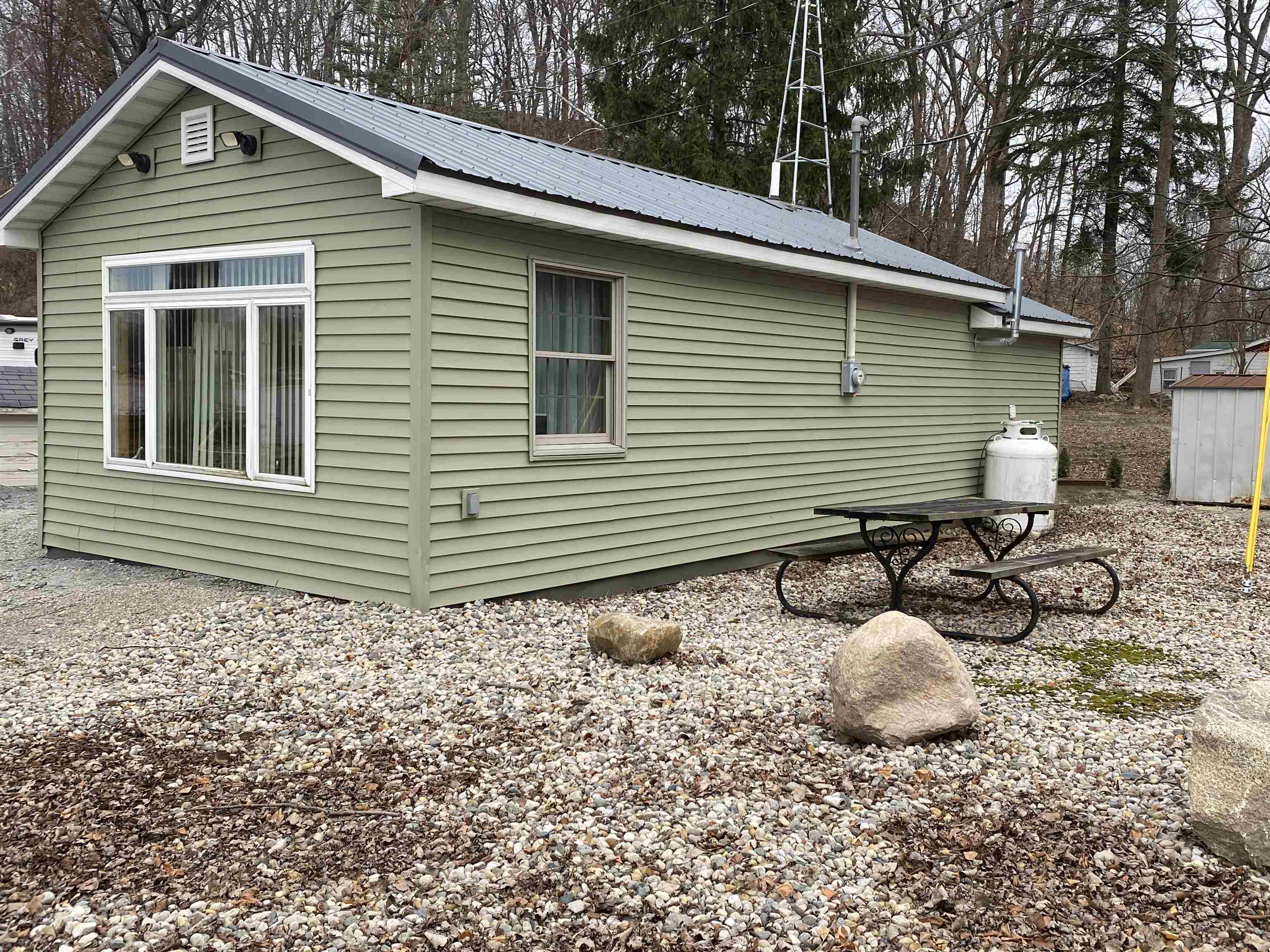 LAKE FRONT cottage on Hogback Lake with floating dock included! This cottage has NEW poured concrete floors, insulation, knotty pine interior and a NEW steel roof. The plumbing is all done and ready for your washer/dryer. Sellers had a new water filtration system and well pump installed. Come and enjoy great fishing or just relax. Hogback Lake also connects to Golden Lake. Lake life is calling your name....