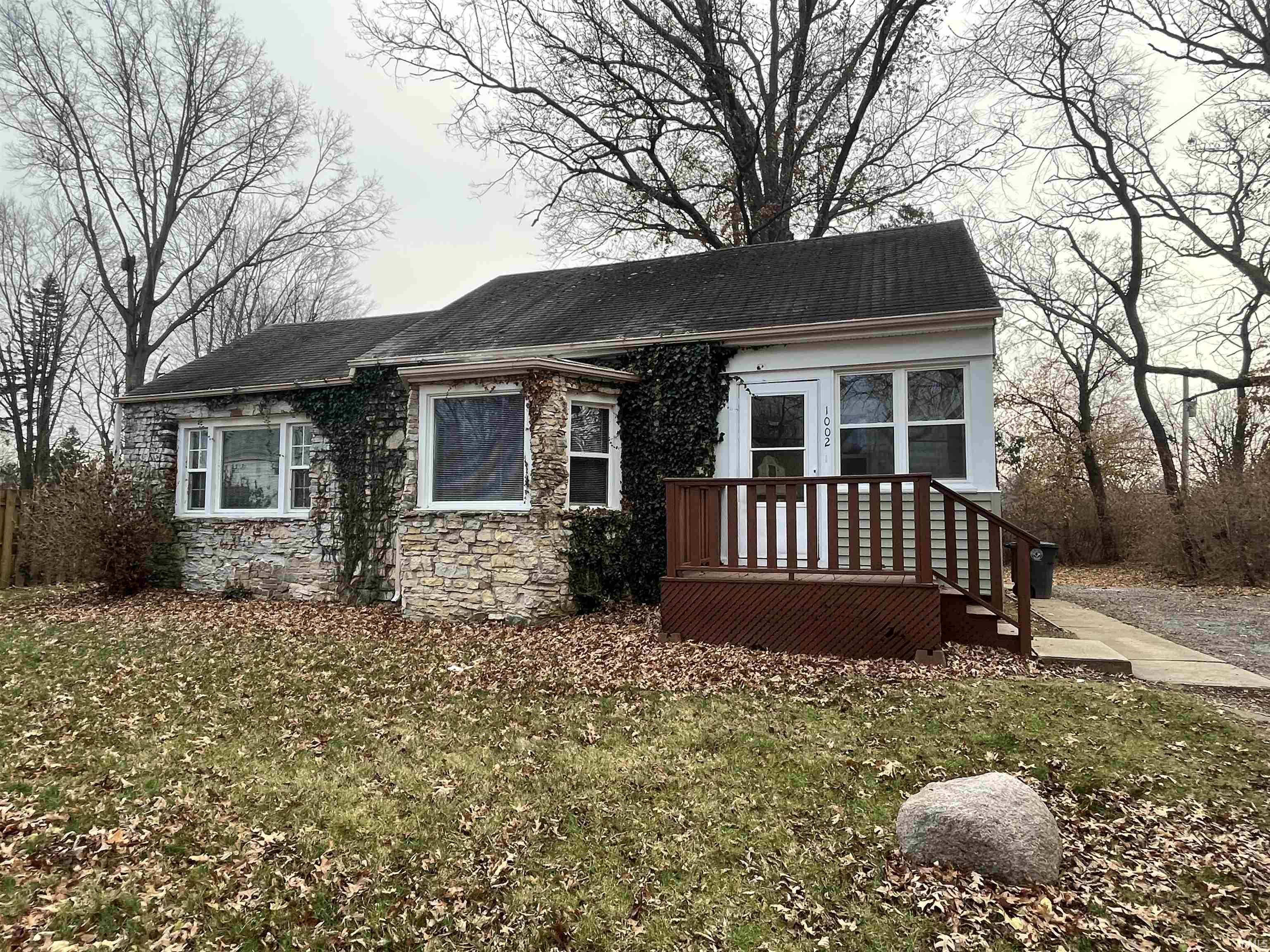 Spacious 4-Bedroom Stone Front Ranch nice spacious Lot with secluded setting, semi-finshed Rec Room in basement Gas heat C/A Newer Kitchen ceramic tile backsplash Hardwood floors in Living Rm.Wood deck enclosed front porch