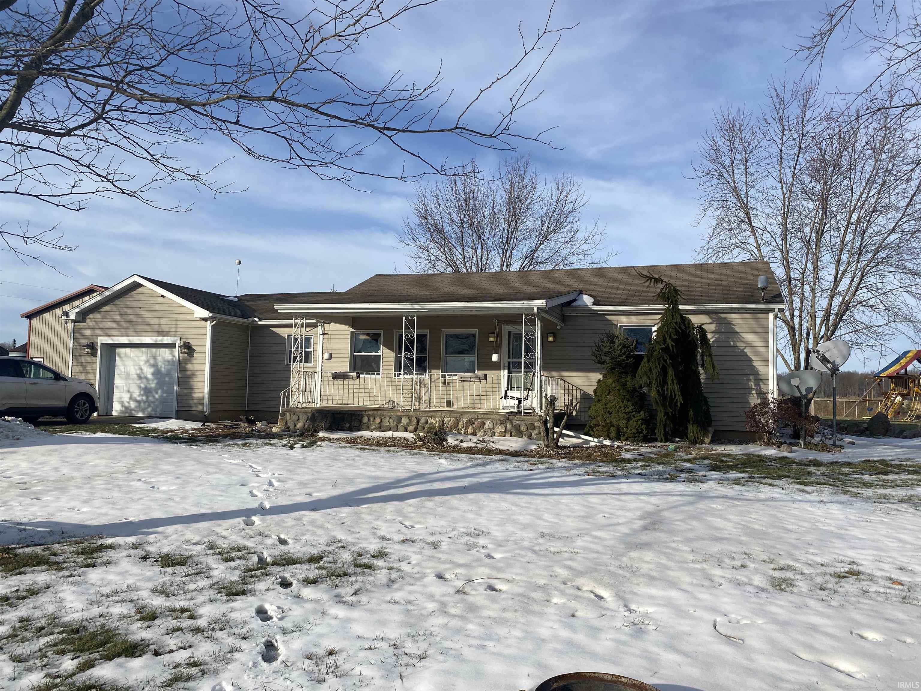This beautifully remodeled property has been upgraded to a 4 bed, 2 bath home with wood & tile floors, updated open kitchen. This floor plan offers great separation of bedrooms on the main floor with a large Owners Suite that includes a private bath, closet and private entrance to the outdoor deck. The huge 1 acre lot has been professionally landscaped and inlcudes a 54x30 pole building (1620 sq ft). This property has a wonderful country setting but close to all of the amenities of Angola within a short drive to all the quaint, historic downtown shops, restaurants, parks, libraries, Trine University, Cameron Hospital, Pokagon State Park & the many gorgeous lakes in the area. ***Excluded from the sale, water heater, water softener, & lift/hoist system in pole building, all furniture, electronics and personal property. Refrigerator in listing photos is not being left with property. Seller will provide replacement Refrigerator at time of closing