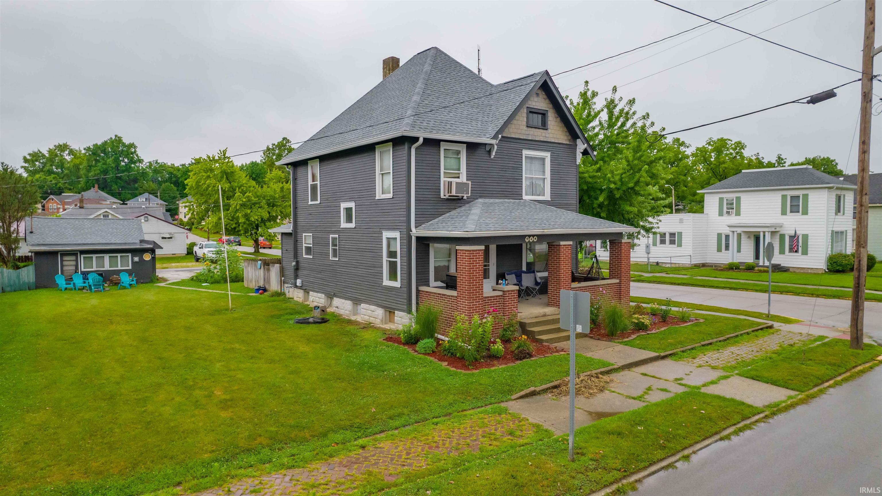 Nestled in a peaceful neighborhood is this two-story residence with four bedrooms and two and a half baths this spacious home offers room for everyone. The main level welcomes you with a blend of elegance and warmth, showcasing an original woodwork-adorned foyer and a flowing layout that seamlessly connects the living room, dining room and an updated kitchen. The versatile back porch doubles as a main-level bedroom, highlighting the home's adaptability. Upstairs, you'll find four bedrooms, alongside a renovated full bath and access to the expansive fully floored attic for abundant storage. The basement features a spacious game room, complete with a pool table and oak bar, which are included in the sale. This level also houses a new gas boiler and tankless water heater, a large mechanical room and a generous laundry room with 3/4 bathroom. Recent updates encompass fresh paint and flooring, a remodeled upstairs bathroom, upgraded electrical and plumbing, and a relatively new roof. A covered front porch invites relaxation, while the detached garage, workshop space, and ample parking cater to convenience. This property's appeal is further enhanced by an additional parcel across the alley featuring additional parking and a spacious storage shed.