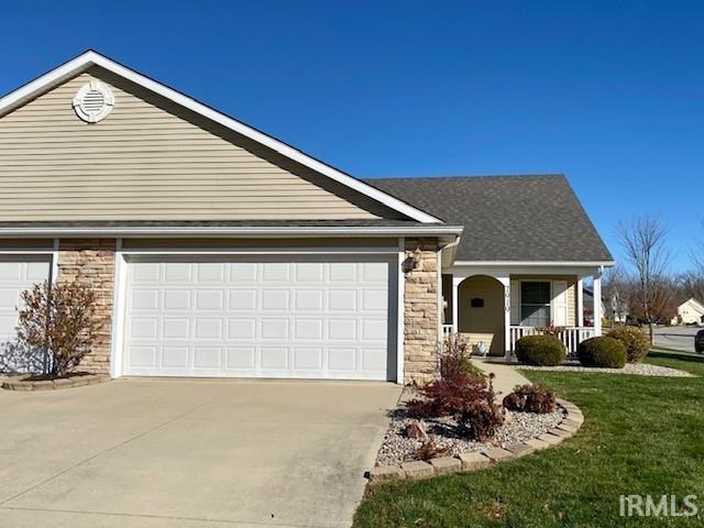 Move in Ready 2 bedroom Condo located in Mason's Village! Well Maintained and ready for it's new owner. Enjoy the front covered porch, foyer, 1- 1/2 bath, nice sized kitchen and large great room. All open concept with abundant lighting with attached two car garage. All kitchen appliances stay. This cutie sits on a large corner lot with mature trees but YOU DON'T need to WORRY about maintaining it. Low Monthly dues covers your lawn care and snow removal.