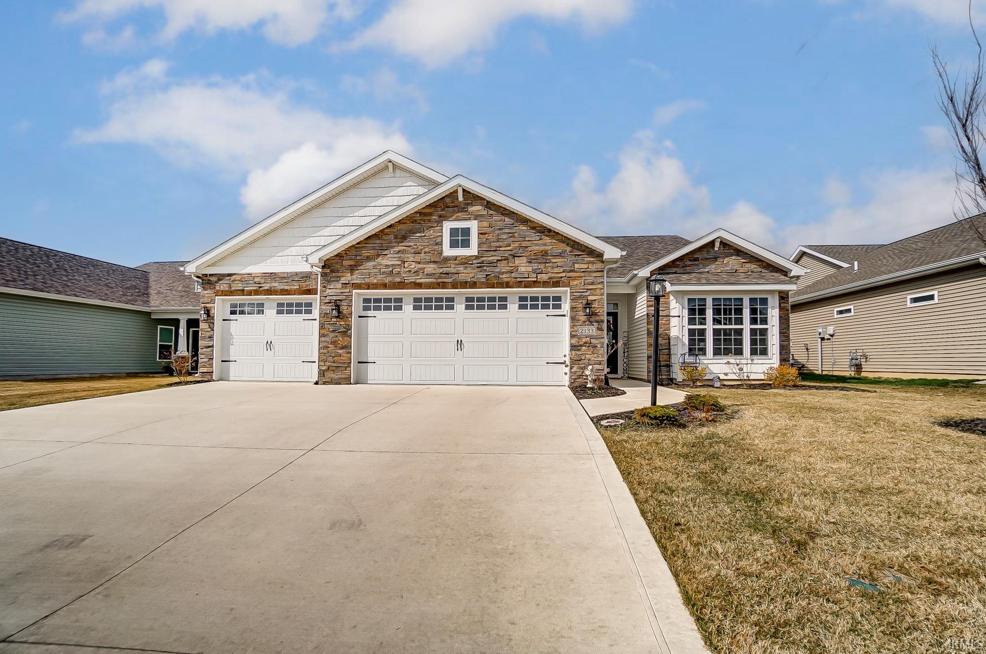 Your dream home awaits! Convenience, comfort, and a touch of class at 2133 Lawsons Cove, Fort Wayne IN, a 2 year old Majestic Homes-built, ranch-style home with the fantastic 1,945sqft chardonnay floor plan in Cottages of Catania. Feeling overwhelmed with everything life throws at you? Balancing work, family, and personal time can be a circus act. But what if your home could help simplify things? This home can be your sanctuary from the hustle and bustle. With 3 bedrooms, 2 bathrooms and a 3 car garage, this abode is not just a house, it's a lifestyle. The master bedroom, with its trey ceiling and expansive walk-in closet, offers a private retreat. The master bathroom comes equipped with ADA height toilets, dual sinks, and a full tile shower - because we all deserve a bit of luxury, right? The heart of the home, the kitchen, boasts quartz countertops, a tile backsplash, and all stainless steel appliances which stay, as does the built-in trash can in the cabinet of course. The dual-sided gas fireplace adds a cozy touch to the living room, and the added carpet provides an extra layer of comfort too. The vaulted ceiling in the kitchen and 9' ceilings throughout add a sense of spaciousness. And let's not forget the floored attic with a pull down ladder for access to extra storage space! The washer, dryer, water softener (owned) and garage racks also stay, making moving in a breeze. The exterior is just as impressive, easy to notice with so much stone on the front elevation. The front yard is irrigated, and the backyard is adorned with a few added trees for additional privacy. The solid pergola on the back patio can also stay and the fence can stay or go. The home comes with a transferable 5-year complete home warranty which has 3 years remaining. And if you're keen on maintaining the yard yourself, the riding mower, self-propelled mower, and snow blower could be negotiated. There could be an opportunity to assume the existing VA loan with a 4.625% interest rate. Ask for more details. 2133 Lawsons Cove is more than just a house, it could be your future home!