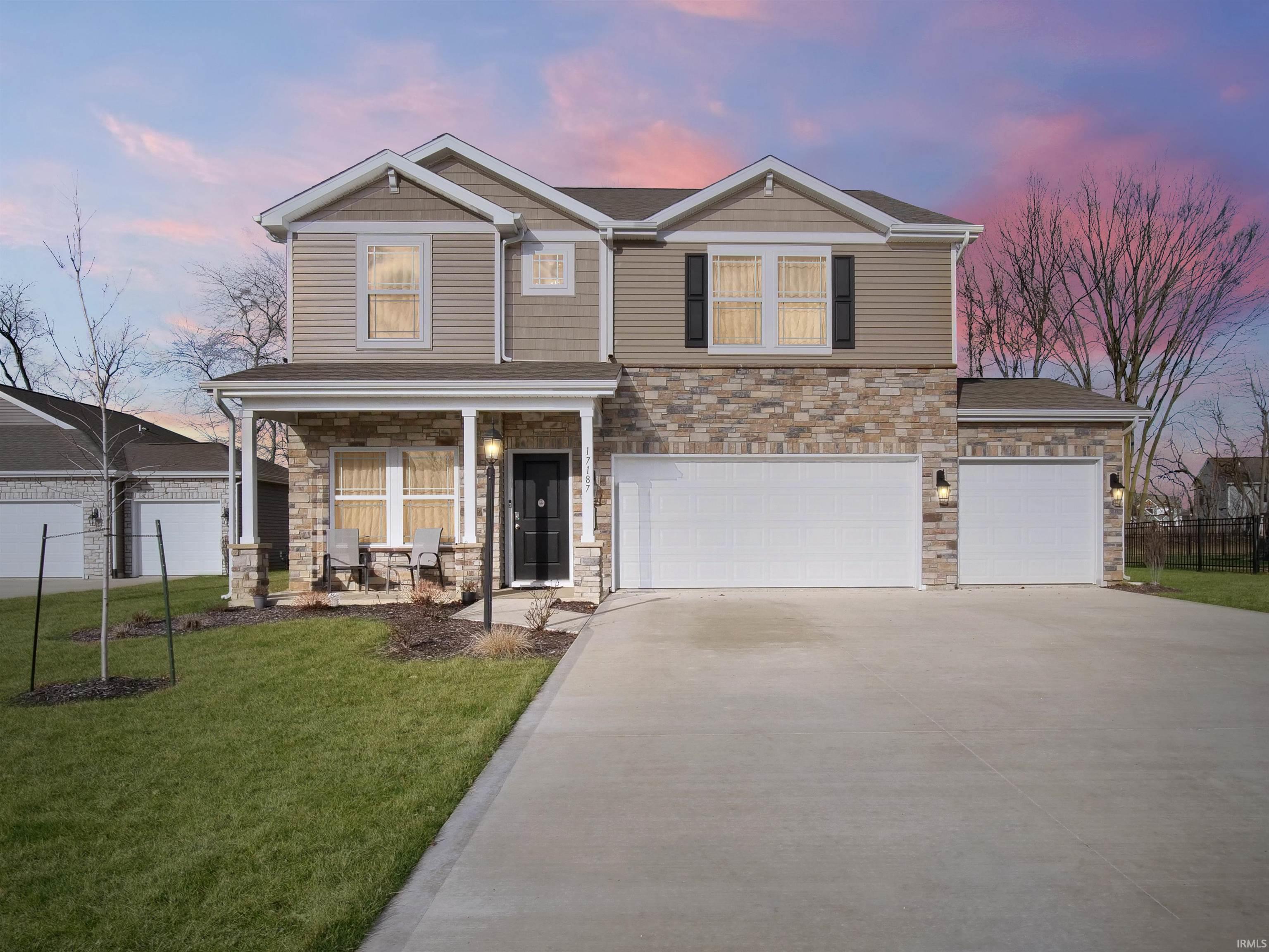 Welcome Home to Marcella! Why wait to build when you can move right into this meticulously crafted, like-new 1-year-old D.R. Horton constructed Holcombe floorplan. With 4 spacious bedrooms and over 2300 sq ft of living space, this home offers comfort and style at every turn. The heart of the home is the stunning kitchen, complete with quartz countertops, stainless steel appliances, a walk-in pantry, and a breakfast bar island perfect for entertaining. The large great room overlooks the serene, private tree-lined backyard, providing a peaceful retreat after a long day. Need extra space for work or play? You'll love the second living area/den on the main floor, offering flexibility to suit your lifestyle. The second level features all 4 bedrooms. The master suite features a double sink vanity, walk-in closet, walk-in shower, and private water closet. Three additional bedrooms upstairs, along with a second full bath boasting a dual vanity sink and tub/shower combination, ensure ample space and amenities for everyone. Convenience is key with the laundry room and mechanicals tucked away on the second level, leaving plenty of room in the 3-car garage for all your vehicles and storage needs. Located in the highly sought-after Northwest Allen County Schools district and eligible for USDA financing, this home offers easy access to St Rd 3, Garrett, Auburn, and the charming Country Heritage Winery. Plus, enjoy direct access to the Pufferbelly trail, extending nearly 9 miles south to the Cookie Cottage on Washington Center Rd. Come see why this house should be your next Home