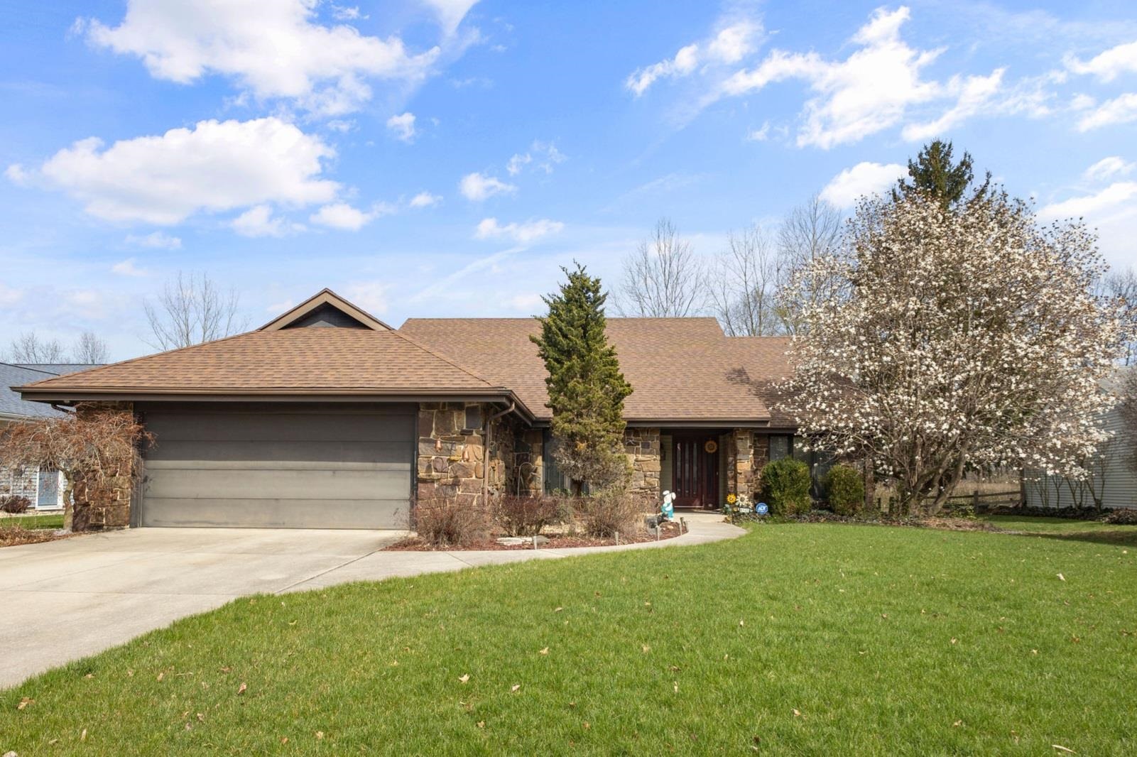 This Worthman Custom built Home checks all of the boxes! The stone clad vaulted ranch opens up with a Foyer topped with an ornate light fixture dangling from the stunning wooden slat ceiling. The Great Room is anchored by a towering stone gas log fireplace and is steps from a patio that overlooks a seemingly endless backyard that ends at the shores of the Saint Mary's River. The Eat-in Kitchen comes loaded with stainless steel appliances and features updated tile flooring, a commercial grade stainless island, and custom concrete countertops which complement the original glass front cabinetry. The Home offers a split floor plan with 2 Guestrooms and their shared Full Bath to one side AND to the other, a main level Master suite under a vaulted beamed ceiling and its en suite that features Both an enclosed shower and jetted tub. The Upper-Level Loft gets you up close with the beautiful ceilings & is a perfect space for entertaining as it comes already fitted with a pool table. Schedule your tour Today & don't risk losing out on a dream Home!