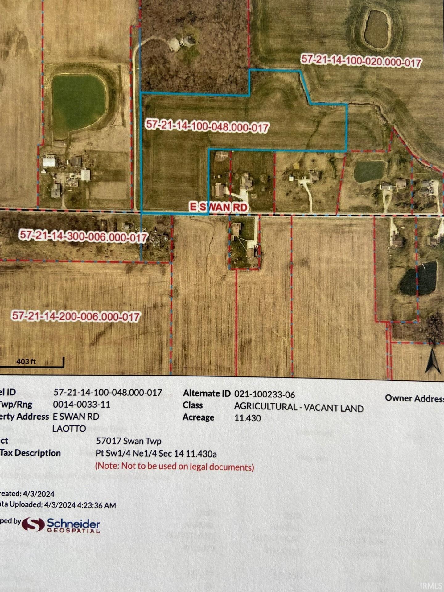 Fabulous site to build your home! Total of 11.430 acres of farm ground located just north of Laotto. 365 feet of road frontage on E Swan Road which allows plenty of room to build. East Noble School corporation, Avilla grade school. Easy access to Hwy 3 to get to Fort Wayne or north to the lakes. As of listing date, Home and pole barn on 3 acres are also available to add to the bare land.
