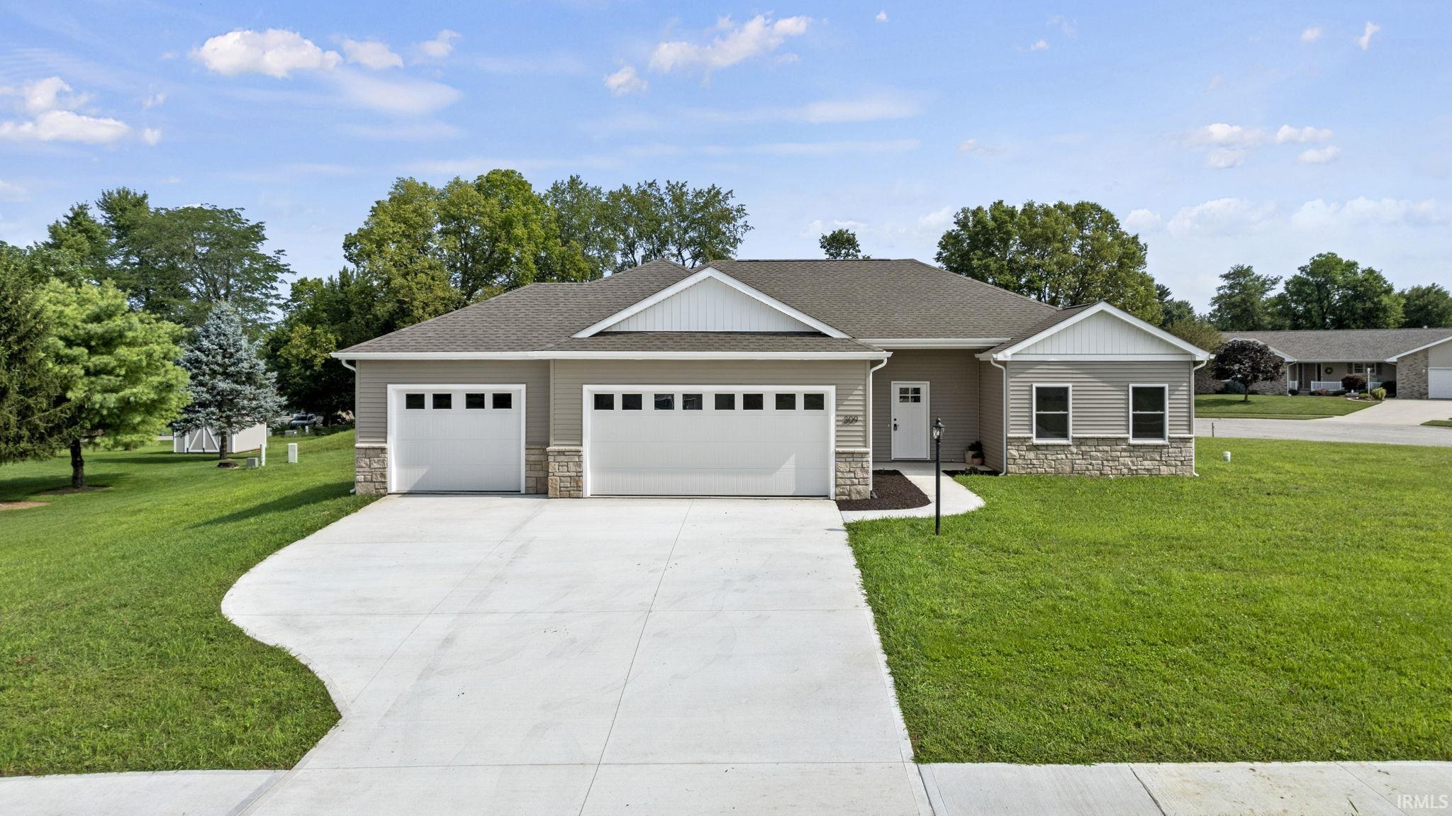 No need to wait for interest rates to come down! The builder is offering up to $6,200 to be used towards a 2-1 interest rate buy down or other closing costs with an acceptable offer. That could save you up to $343 a month for the first year. Have you always wanted a brand-new home, but don’t want to wait 8 months for the building process? Well, you’re in luck! This 3-bedroom, 2-bathroom ranch home has over 1,800 square feet and has just been completed. Sitting on nearly a half-acre corner lot, the open, split floorplan gives you plenty of space to spend time with family and friends yet plenty of privacy. The entryway invites you into the family room complete with fireplace making it a cozy place to hang out on those chilly evenings. The kitchen offers plenty of counter space, is plumbed for a gas range, and opens to the bonus room that could be a sunroom or formal dining area. You will have plenty of storage in the large walk-in closet and separate laundry room. The primary bedroom suite has a very large walk-in closet and fabulous spa-like bathroom with a tiled walk-in shower. The other 2 bedrooms are on the opposite side of the home and share a full bathroom. This home has so many upgraded features such as 9-foot ceilings, marble counters in the bathrooms, and upgraded trim work. The 3-car garage gives you plenty of room for your vehicles and lawn equipment. The home comes with a stainless-steel microwave. The stove can be gas or electric. The furnace is gas and the water heater and dryer hookup are electric. The home has a 2-year warranty on mechanicals and construction, 4-year warranty on the roof system, and a 10-year warranty on the foundation/structure. You really must see this home to appreciate it. Schedule a private tour today!