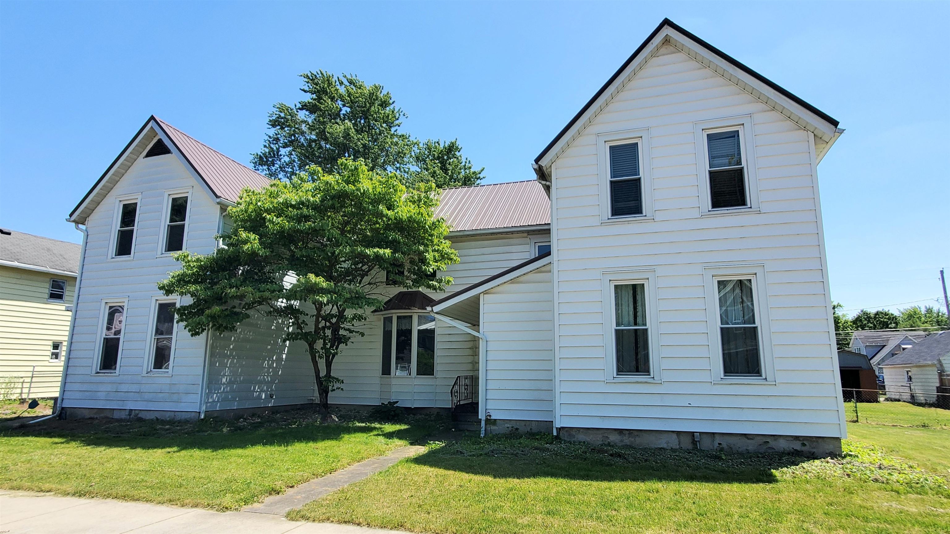 Awesome! Two Homes Combined into One! This unique property has been Updated and Well Cared for over many years! Many of the amenities of the two homes remain: There's a Second Full Kitchen, Extra Bathrooms, and even two staircases to the second floor! The two homes were joined into one with quality construction creating a large connecting living room (21'x15') on each floor! The living rooms have High Ceilings and Bay Windows! The East Kitchen was updated with Custom Hardwood Cabinets with Soft-Close Drawers and Cabinet Doors, updated counters, and appliances remain in both kitchens! There are 5 large bedrooms, 2 Full Baths, and 2 Half-baths. There are many custom cabinets and storage built-in to various areas of the home. There's also a newer Tankless on demand water heater. The whole exterior has been updated with newer vinyl siding and a metal roof! The property also includes a large 2-car garage (24'x24'), a 1-car garage, and a large shed. There are at least 9 Asphalt/Concrete off-street parking spaces, and a motorized gate! This home could be multi-family, Zoned R-2! Seller selling As-Is with 10 days right to inspect.