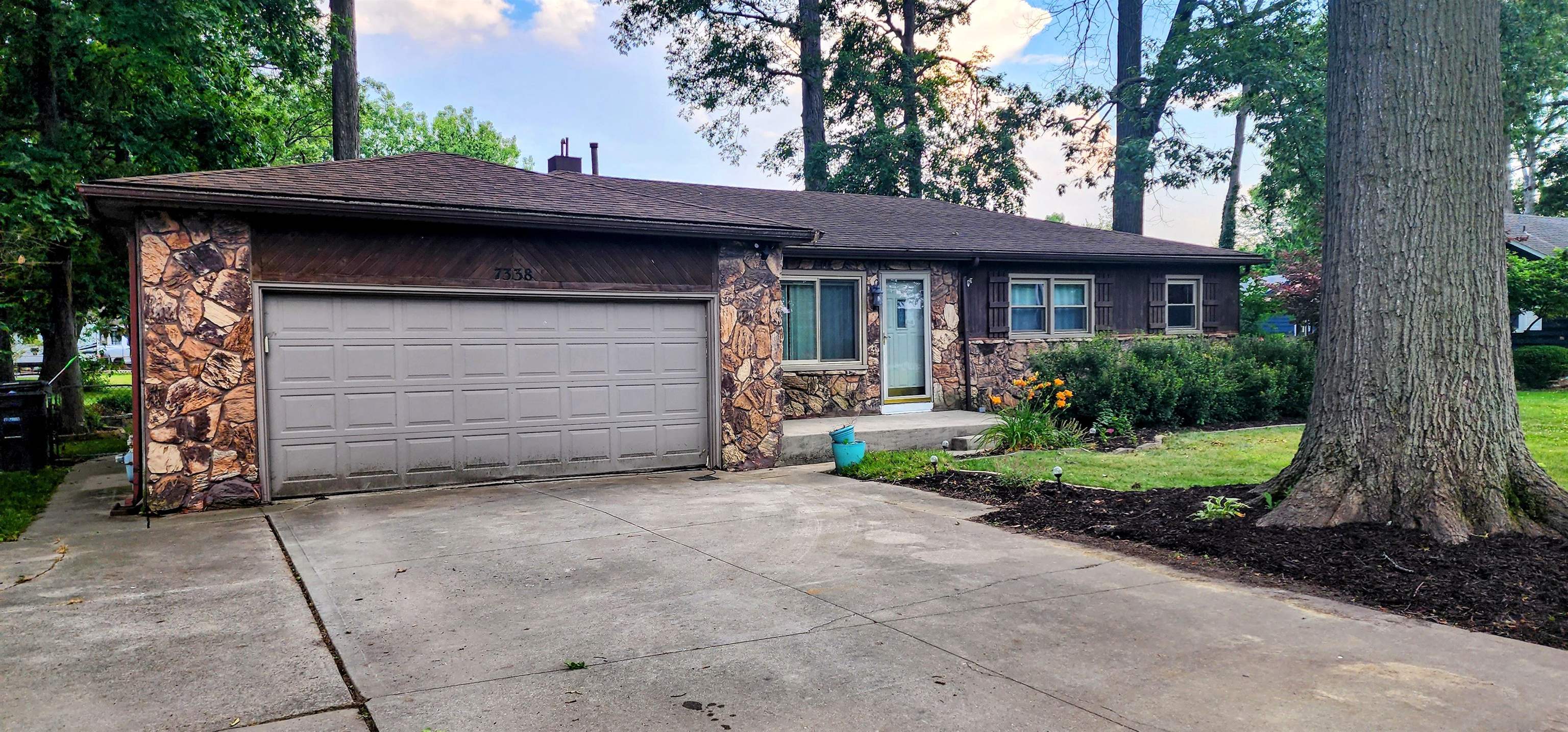 Enjoy quiet evenings under the “Shade of the Old Oak Tree” on this 2/3 acre lot with a large, fenced, back yard affording plenty of room for your dog or children to safely play. This 3 bedroom, 2 bathrooms, almost 1600 sq./Ft home includes a nice living room, a dining area adjacent to the large kitchen, a large family room with fireplace (gas log) and separate entrance to the back yard, an attached 2 car garage with remote opener. A separate laundry room with another access to the expansive back yard that includes a fire pit area / storage shed. The home has 90+ % Eff. furnace and newer water heater. Windows have been updated to insulated vinyl units. Roof installed in April 2015. Close to Chapel Ridge and Interstate 469 access and schools. Don't miss out on this one!
