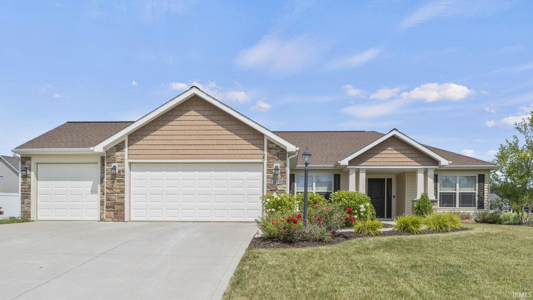 *Welcome to this exceptional 3 Bedroom + Den & 2 Full Bath Ranch with over $30,000 worth of improvements located on a beautiful pond lot in Carroll Schools! *This stunning home boasts nearly 1,700 square feet of thoughtfully designed living space, offering the perfect blend of comfort and style. *Step through the elegant foyer and immediately notice the beautiful wood laminate flooring that flows throughout the main areas. *The versatile Den, featuring glass French doors, provides an ideal space for a home office or study. *The heart of this home is the expansive Great Room, highlighted by a striking 9' tray ceiling and a cozy stone gas log fireplace, perfect for relaxing evenings. *The open-concept design seamlessly flows into the gourmet Kitchen, which is sure to delight any chef. *The kitchen features custom-painted 42" cabinets, Stainless Steel appliances, a convenient island, quartz countertops and a stylish glass backsplash. *A dual-door pantry offers ample storage space as well. *Retreat to the serene Primary Suite, where you’ll find a luxurious en-suite bath equipped with a 5’ ceramic shower, dual sinks and ceramic flooring. *The walk-in closet is outfitted with Closet Tamers, ensuring your wardrobe remains organized and accessible. *Outside, enjoy the covered patio with a massive concrete area plus a hot tub overlooking a picturesque pond view, providing a tranquil setting for outdoor entertaining or simply unwinding after a long day. *Additional features include a spacious 3-car garage, professional landscaping all the way around and proximity to the award-winning NWAC schools, shopping, restaurants, and scenic trails. *Experience the perfect combination of modern amenities and timeless charm in this beautiful home. *Schedule your visit today!