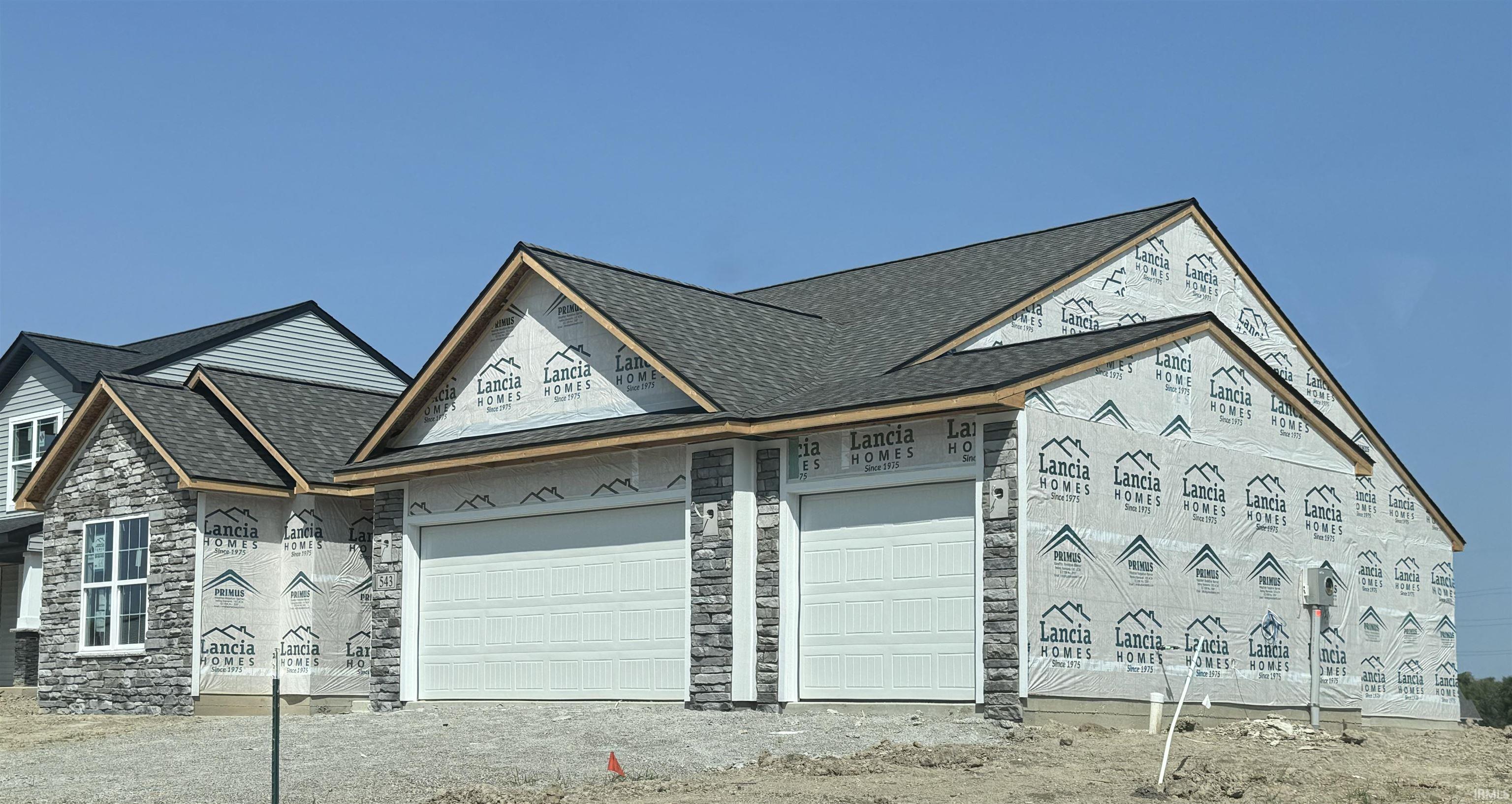 Backs up to common area! This is a Lancia's Lucia split 3 Bedroom ranch with 1,613 sq.ft. with a 17 x 9 covered back porch and 3-Car Garage. Beautiful covered back porch gives a view of pond behind the lot to the west. 9' ceilings throughout home and Garage. Great Room has wall of windows facing covered porch, raised tray ceiling with paddle fan, electric horizontal fireplace with floor to ceiling surround and conduit-outlet above for tv. Kitchen island has breakfast bar, stainless steel smooth-top stove, dishwasher, microwave, Quartz countertops, ceramic backsplash, soft close drawers, additional gas line hook-up behind stove are standard. Allowance for Fridge, Washer and Dryer which will be installed at closing. Walk out sliding doors from Nook to Patio. Separate Laundry Room. Owner Suite Bedroom with paddle fan, has dual rod shelf 1-wall unit in the walk-in closet, Bath has dual sink vanity and 5' shower with swing glass door. Bedroom 3 could be an Office or Bonus Room. Vinyl plank flooring in Great Room, Kitchen, Nook, Pantry, Foyer, Baths and Laundry. Garage is finished with drywall, paint, attic access with pull-down stairs and has one 240-volt outlet pre-wired for an electric vehicle charging. Elevation has stone, dutch gable and vinyl shakes. (Grading and seeding completed after closing per Lancia’s lawn schedule.) This is a Smart home with NEW Simplx Smart Home Technology - Control panel, up to 4 door sensors, motion, LED bulbs throughout, USB built-in port chargers in places. Lancia home features a 2-year foundation-to-roof guarantee and an in-house Service Dept. Selling agent to verify school. NWAC may make changes to school assigned as NW Fort Wayne grows.
