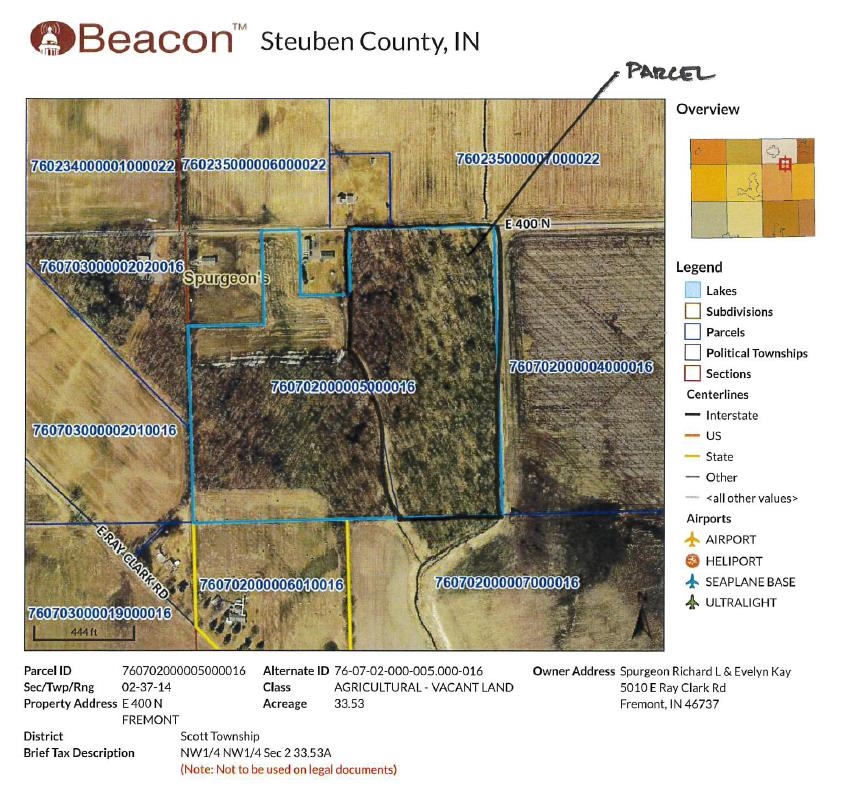 Exceptional plot of heavily wooded land near Fremont and Angola. To be divided from larger parcel, priced at $10,500 per acre, amount of land and final price will be established by pre-determined boundaries and verified by survey. Wooded homesite or recreational ground. Hard to find small acreage like this!