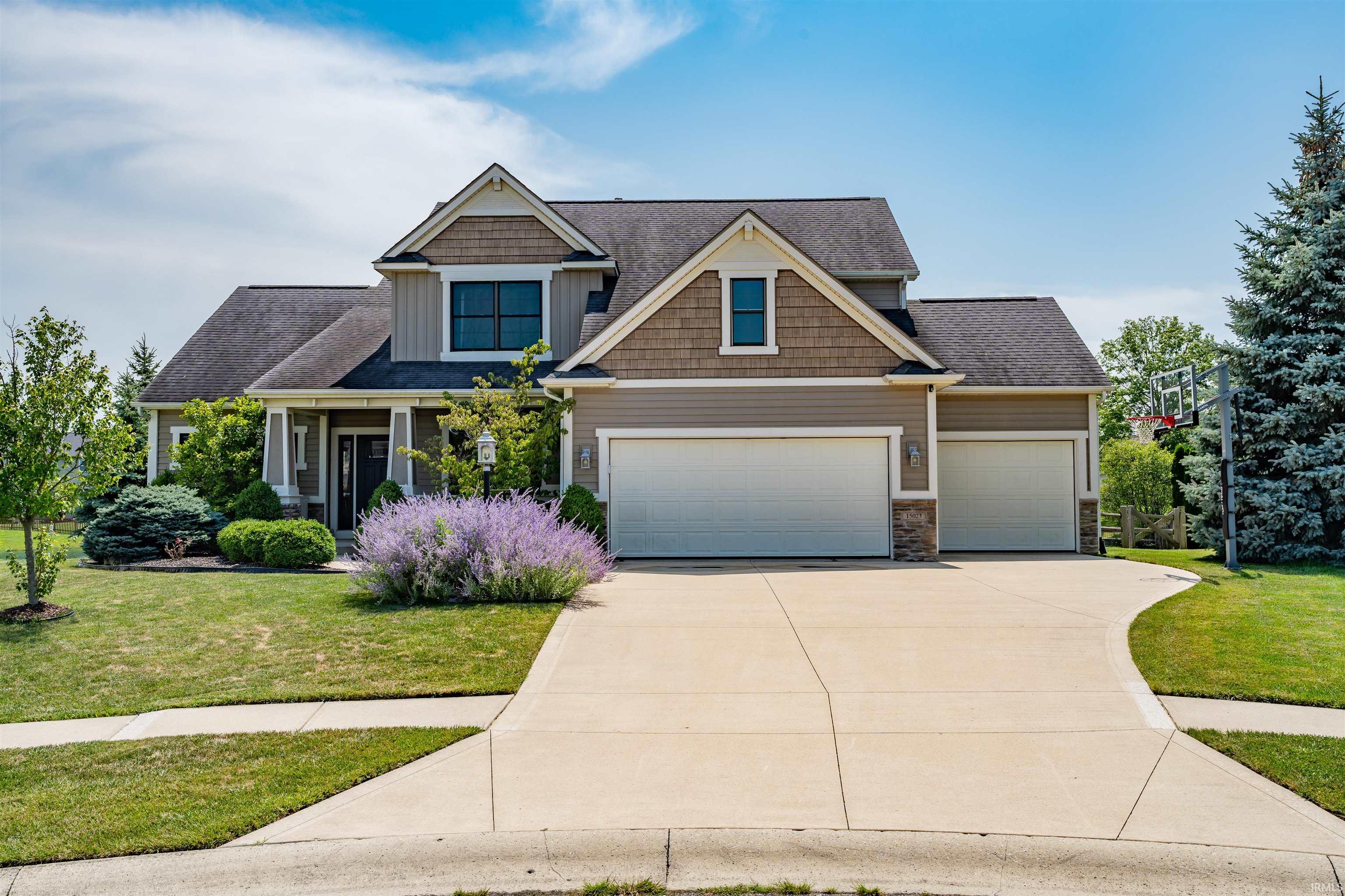 Welcome home to this stunning Craftsman-style home, perfectly situated on a peaceful cul-de-sac in the highly desirable Lakes of Jonathan's Landing. Featuring gorgeous water views and a blend of warmth with modern sophistication, this 4-bedroom residence is a true sanctuary of comfort. As you enter glass-paneled French doors through the foyer, you are seamlessly led into a refined home office, complete with custom built-in shelves that add a touch of grace. The great room features a cozy stone fireplace framed by built-ins and an impressive wall of windows that flood the space with natural light. This airy and open layout effortlessly connects to the second kitchen island, making it an entertainer's dream. This spacious kitchen features newer stainless steel appliances, abundant counter space, and is open to a bright breakfast nook. The adjacent outdoor deck is perfect for alfresco dining and enjoying the serene pond views. The main level’s primary suite is private and adorned with oversized windows that invite abundant light. The en suite bathroom is a luxe retreat, offering dual sinks, a deep garden tub, a separate shower, and a spacious walk-in closet. Completing the main level is a thoughtfully designed laundry room, a convenient half bath, and built-in lockers that lead to the garage. Upstairs, a versatile landing with a built-in desk provides a functional workspace, complemented by three additional bedrooms and a second full bath. The finished daylight basement offers a dynamic space for leisure and entertainment, featuring a stylish wet bar with a full-sized refrigerator, mounted TV for the big game, and Kegerater. There’s ample room for recreation and a family room area, complete with built-ins and a third full bath. Step outside to the backyard oasis, where a new fence encloses lush landscape and picturesque pond views, creating a peaceful retreat for relaxation. Situated near walking trails, a neighborhood pool, and within the esteemed SW schools district, this home combines idyllic amenities with community convenience.