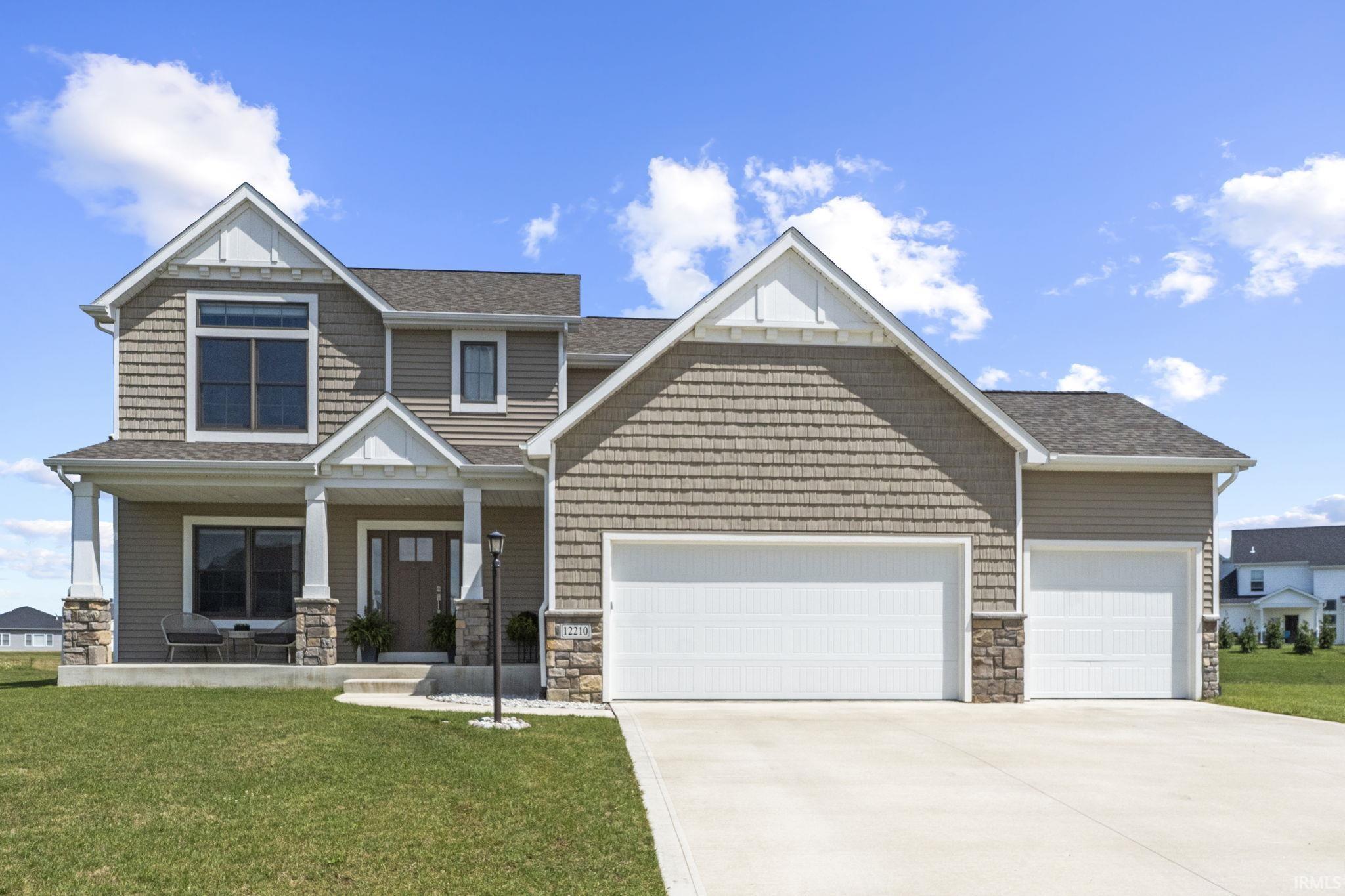 Modern Retreat: Discover this stunning 3-year-old home, boasting five spacious bedrooms, three full baths, and one half bath. Enjoy an open floor plan that seamlessly blends style and functionality. The main floor has a den/office space. The large living room with a fireplace has abundant natural light coming in. The eat-in kitchen highlights the large kitchen with modern features, including a kitchen island and open shelves. Perfect for entertaining! The mudroom has plenty of space, including shelves, and allows for easy access to the guest bath. The primary suite has cathedral ceilings with a wood beam, two large walk-in closets, and a gorgeous bath. The three additional bedrooms are spacious with nice-sized closets. The laundry room is also located upstairs. The newly finished basement has a large family room and rec area, an additional full bath, and a fifth bedroom. The outside offers a large concrete patio and an addition patio currently being used as a basketball area. This home offers elegance and tranquility, set on a picturesque water feature.