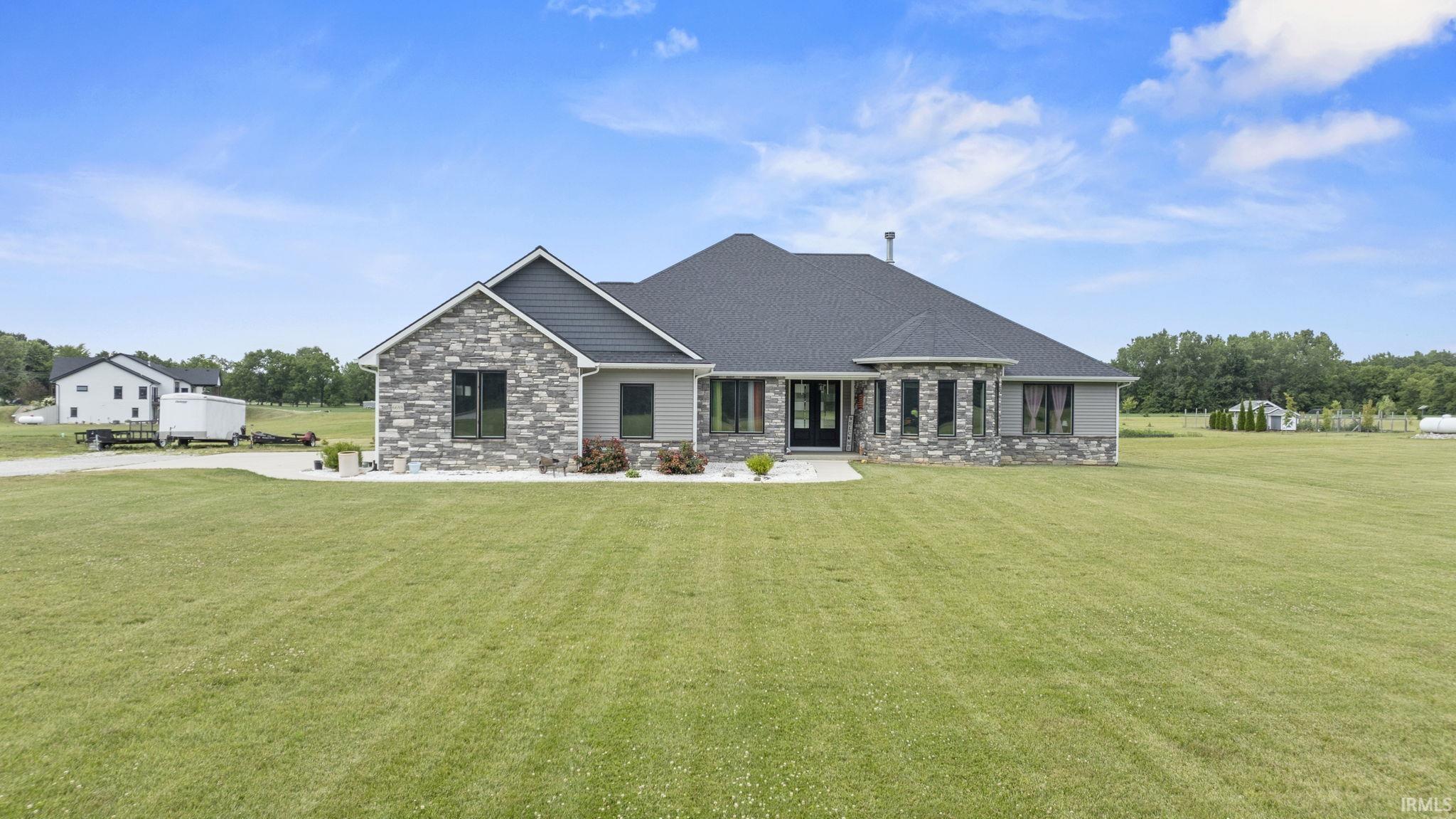 **OPEN HOUSE Sunday 2:00-4:00** YOUR SECOND CHANCE TO OWN THIS 5 YEAR OLD BEAUTY! All inspections and appraisal were completed by the previous buyer and checked out. Discover serene country living on this expansive 4.5 acre property in Northwest Allen County Schools. Pass through the expansive open front porch and double doors into the charm of this ranch-style home featuring 4 large bedrooms, including two en suites, AND a split bedroom floor plan, ideal for comfortable living. In total, 3.5 bathrooms are available. Enjoy the spacious open concept, highlighted by a two-tier island in the kitchen and two oversized flex spaces offering endless possibilities. Appliances are included, enhancing convenience throughout. Step outside to your 4+ acre oasis and no neighbors in direct sight. Enjoy an open patio with a fire-rated wall for grilling, perfect for outdoor entertaining. The oversized 3-car attached garage provides ample storage and workshop space. Located in the highly regarded Northwest Allen County school district, this property offers both tranquility and accessibility to amenities. Don't miss out on this rare opportunity to own a piece of countryside paradise with plenty of room to grow and thrive.