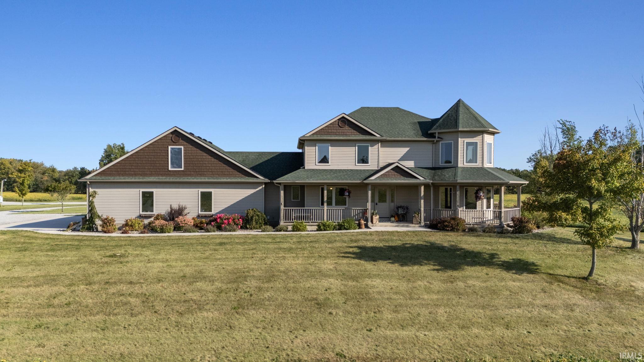 Discover the perfect blend of tranquility and modern living in this stunning farmhouse, nestled on a sprawling 7-acre lot with additional acreage available for purchase. This beautiful retreat offers the ideal escape from the hustle and bustle, yet is just a stone's throw away from local amenities. As you arrive, you’ll be greeted by the warm and inviting covered front porch, perfect for sipping your morning coffee while taking in the serene surroundings. Step inside to find a spacious and thoughtfully designed interior featuring 4 generous bedrooms and 4 modern baths and a craft/den space in the basement, ideal for family living or hosting guests. The heart of the home boasts an expansive open-concept living area filled with natural light, seamlessly leading to a large back deck that invites you to unwind in your private outdoor oasis. Whether you’re entertaining friends, enjoying family barbecues, or simply soaking in the breathtaking views, this deck is the perfect spot for all your outdoor activities.