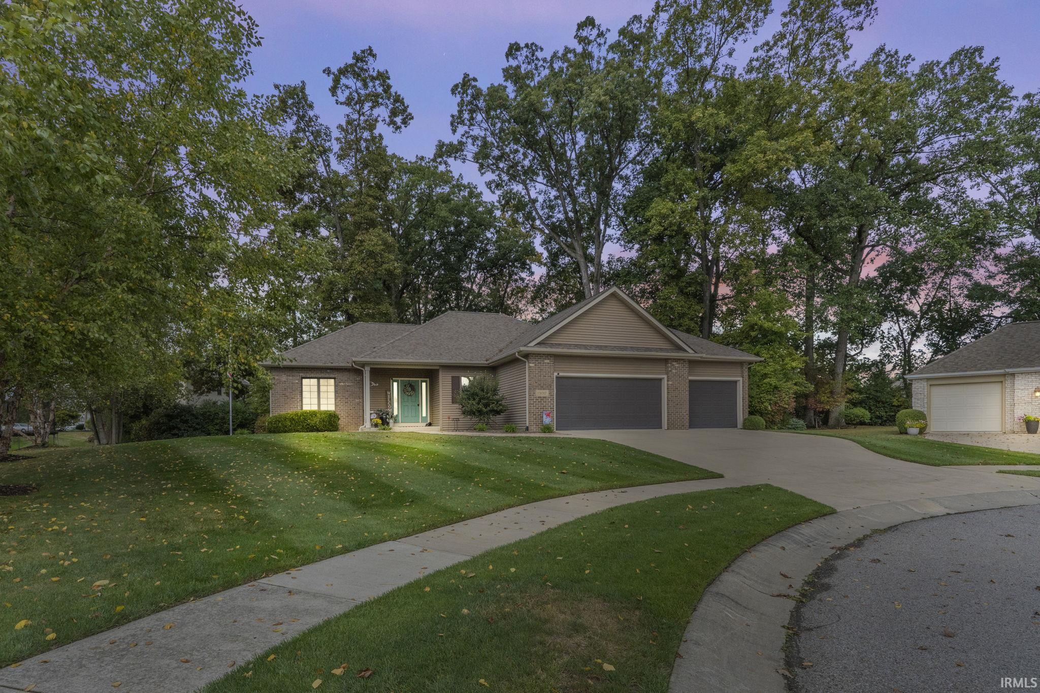 48 hour first right contingency. Welcome to this beautifully updated 3-bedroom, 2-bath Ranch home located in a highly sought-after neighborhood within the Northwest Allen County School District. Tucked away on a peaceful cul-de-sac, this home features a full finished basement with a large recreation room, a den area, and the potential for a 4th bedroom, offering versatile living space for your needs. With a 3-car garage, 6-inch exterior walls for added energy efficiency, and 9-foot ceilings, the home feels spacious and solid. The great room features a stunning cathedral ceiling, and the backyard provides a tranquil retreat with a large Trex deck, beautiful landscaping, and a partially wooded backdrop. The playground equipment stays for your convenience. Additional highlights include a whole-house generator, irrigation, a 4-zoned HVAC system with a UV light for air purification, a heat pump backup, ADT security system, electric dog fence, and attic storage. Appliances stay, making this home truly move-in ready. Conveniently located close to shopping, dining, and schools, this home offers modern amenities and a serene setting perfect for everyday living.