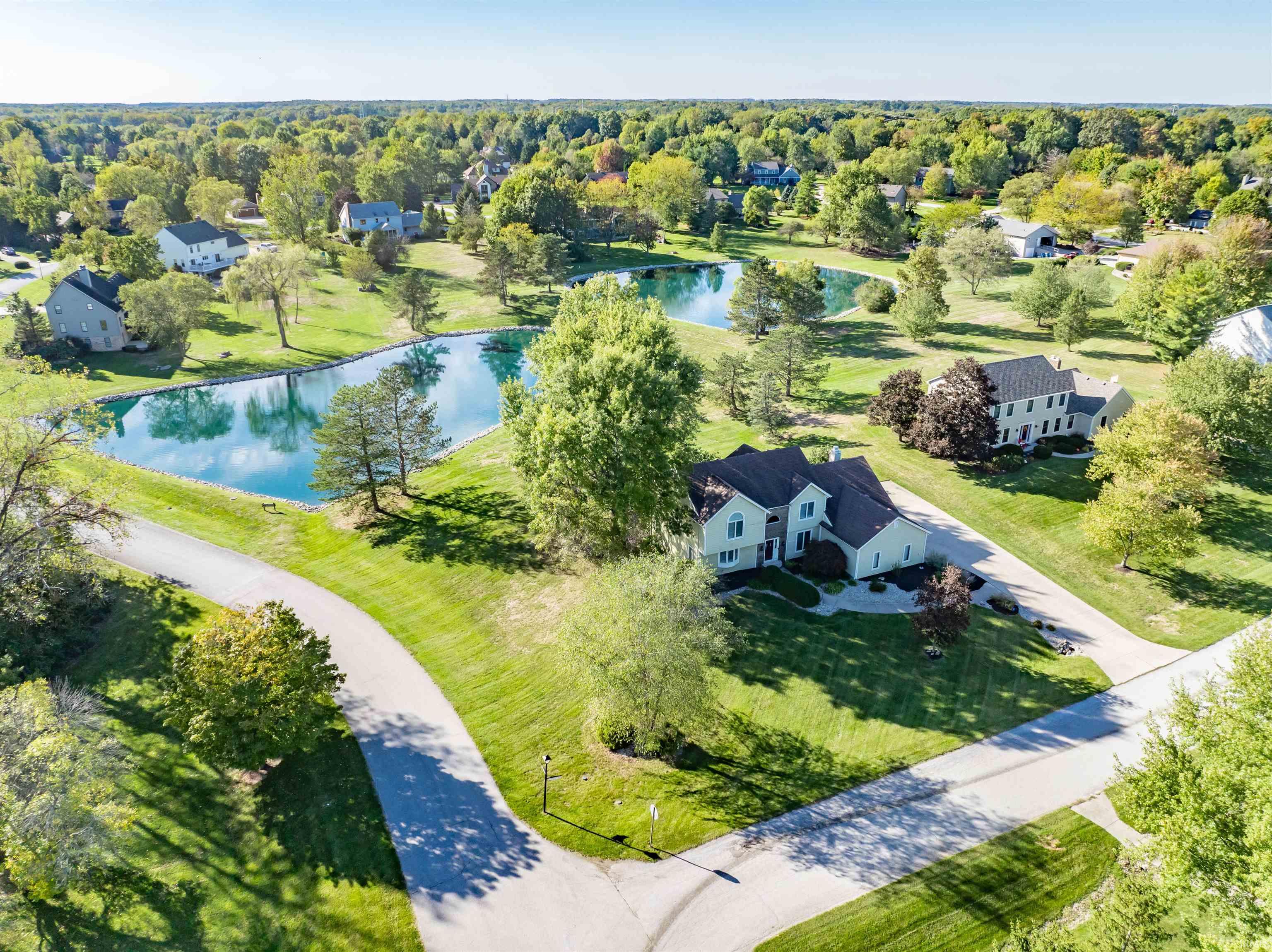 Old Orchard Lake, the quiet and quaint community located off Amber Road just outside the city limits, hosts your next home. This highly desirable, established neighborhood offers large lots with mature trees, community stocked ponds and tennis courts. Located on a sizable corner lot with fantastic views of the water behind, sits this nearly 4,000 square foot two-story home on a finished basement. The foyer has a soaring ceiling and welcomes you with a grand staircase, formal living or office area to your left and formal dining to your right. The updated kitchen with breakfast nook features Kraftmaid custom cabinets, solid surface counters, chef’s gas range, double ovens, stylish new light fixtures and opens to the great room with a gas-log fireplace flanked with built-ins and access to the screened-in back porch. The oversized primary bedroom boasts a vaulted ceiling and updated ensuite with walk-in closet. The additional three bedrooms on the upper level, all generous in size, have great closet space and share a large full bath with dual sinks. The lower level is open for movie or game night, crafting area and great storage. Oversized three-car garage with additional attic storage space. So much to offer, in the heart of Aboite Township, situated right on the Fort Wayne Trails system, a short drive from Roanoke and Village at Coventry with easy access to I69, and located in the Southwest Allen County Schools district. Schedule your private tour today!