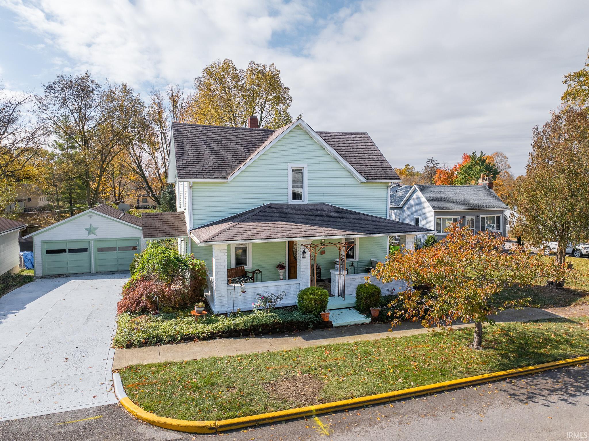 This house could easily be a movie set house! When you pull up to the concrete drive, a feeling of coziness sets in immediately. Starting around the exterior, a wonderful covered front porch greets you along with vinyl siding, newer replacement windows, and plenty of landscaping! Around the rear of the home, you'll be happy to find two patio areas, one raised overlooking the yard, and one just outside the walkout basement. An oversized detached two car garage provides plenty of space for vehicles and storage! Going inside, there is lots of potential to make this large home operational for all different sizes of families! On the main level, there is a large living area, an updated kitchen, a dining area, and an additional room that could be used as a den, office, or bedroom. An updated primary bathroom is also on the main level. On the upper level, you will find three very generous sized bedrooms. In the basement, you will find a nicely finished wood-look tile floor in a large recreation room, that could be an additional bedroom or living area. An additional updated full bathroom is just off the recreation room as well as a utility room that houses the laundry area. This home has many updates throughout cosmetically and mechanically. Cash, Conventional, FHA, USDA, and VA financing will all be considered!