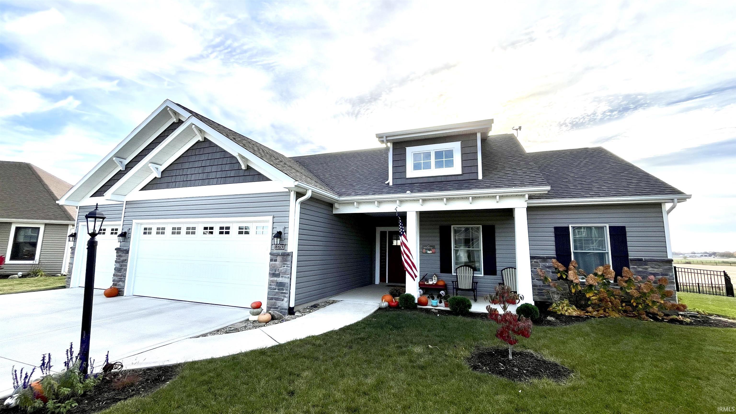 Discover this beautiful craftsman-style home, perfectly situated on a peaceful cul-de-sac lot with expansive views of a nearby horse farm. Built just five years ago, this home combines modern conveniences with cozy charm and is loaded with desirable features, starting with 3 bedrooms and 2 full bathrooms, an open floor plan which features a fireplace, ideal for gathering with family and friends, and 1/2" spray foam insulated exterior walls to keep drafts out! The kitchen has custom hickory cabinets with special features that include soft close drawers, a built in spice rack, tray organizer, and pull out trash can in the island. Take the entertainment to the backyard where you can enjoy relaxing on the covered veranda while taking in the scenic horse farm views and grilling the burgers on the covered patio. This backyard living area includes a beautiful wrought iron-fence that provides peace of mind for kiddos or dogs playing outdoors. The attached 3-car garage offers ample parking and storage space.