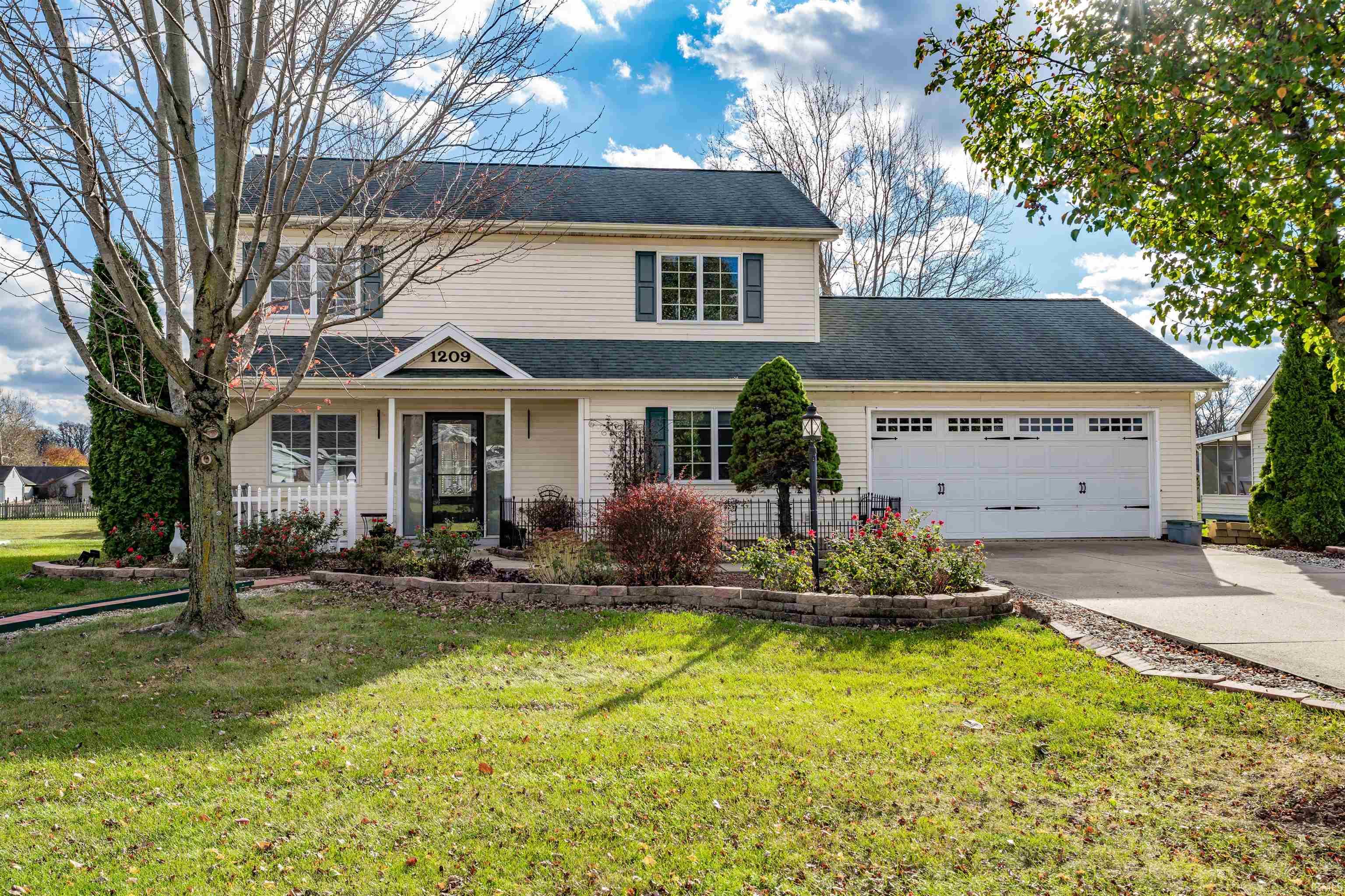 Welcome home to this ultra charming 2-story boasting a 1st floor primary, vaulted great room, fantastic sunroom, bonus loft, fenced back yard & serene ponds views! She is beauty, she is grace, she is 3 bedrooms, 2 full baths on an amazing pond lot with serene water views from every back facing window! Located in friendly Millstone Village community just east of Lima Rd, prime spot allows easy access to nearby shopping, dining & groceries along Lima & Dupont Rds with nearby I-69 intersection plus neighborhood access to highly popular hiking/biking/walking Pufferbelly trail system! Built in 1993, this charmer has been well maintained from outside in & is completely move-in ready! Attractive exterior has lots of landscaping, attached 2 car garage & inviting covered front porch with space to socialize with friends. Beveled glass front door with matching sidelights opens to warm & welcoming atmosphere complemented by newer wood flooring, a neutral color palette & plenty of natural light. Open concept main living area features a soaring ceiling with 2nd floor overlook & flows effortlessly into the formal dining area perfect for entertaining. You’ll notice lots of little details such as the beautiful wainscoting & trim work throughout that adds another level of character to this lovely home. Kitchen has everything you need with abundant cabinetry & potential casual dining nook beside door to enclosed porch. Main floor primary suite has generous deep double closets & en suite bath with walk-in shower. Laundry/mudroom in breezeway with garage access off kitchen completes first level. Upstairs are 2 more comfortably sized bedrooms & the main shared bath with tub/shower combo; ample storage both up & down. Spectacular flex space lofted area would make an excellent study, home office, 2nd living, rec or reading zone with a cathedral ceiling & view of living room below. Glass doors in formal dining open to fabulous three-season room with panoramic water vistas & lots of space, dine al fresco, or simply kick back & relax as you enjoy the view! Large yard is completely fenced with lots of room for all kinds of outdoor fun & activities. Quiet & peaceful neighborhood ideal for strolling or connecting to extensive trail system. Note: whole house generator included. Could this be the family home of your dreams? Don't let this one slip away, take action now!