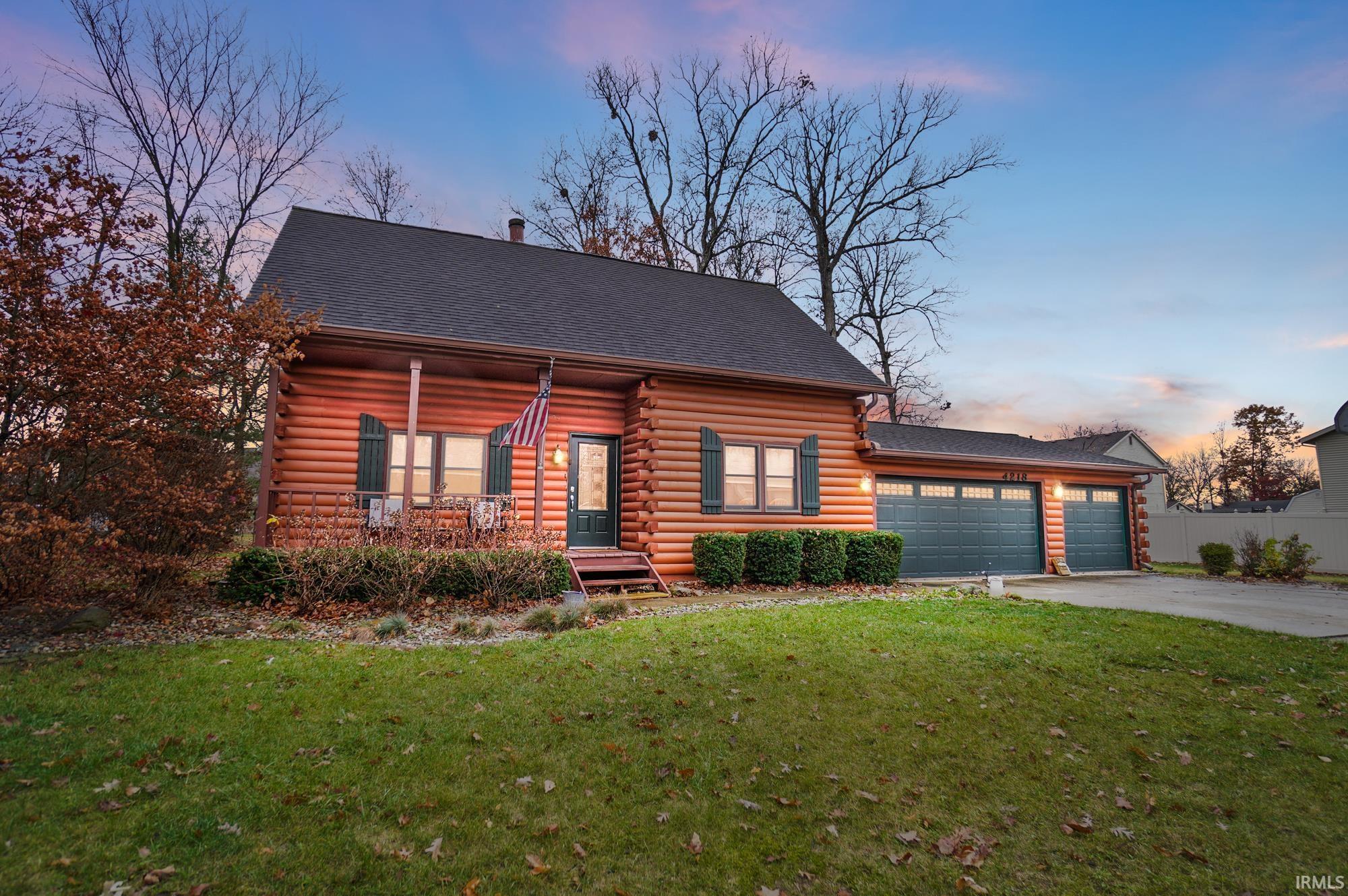 Open House Saturday November 30th 2pm-4pm. What a unique find! Picturesque log cabin situated on a large level lot at the end of the road. This property has a county feel yet located in the city close to shopping, schools and parks. Upon entering the home, the living room boasts a great stone fireplace that adds character and charm to the space. The kitchen offers stainless steel appliances that all remain and maple cabinets, and there is engineered hardwood flooring through out the main level. You'll enjoy having the large master bedroom on the main level as well. The basement is an added bonus consisting of a family room, laundry room and extra storage area. The large heated three car garage is great for storing or working your toys! Enjoy your evenings relaxing on one of the two covered porches or having a fire in the backyard. This place is a great find and one you're going want to call home!
