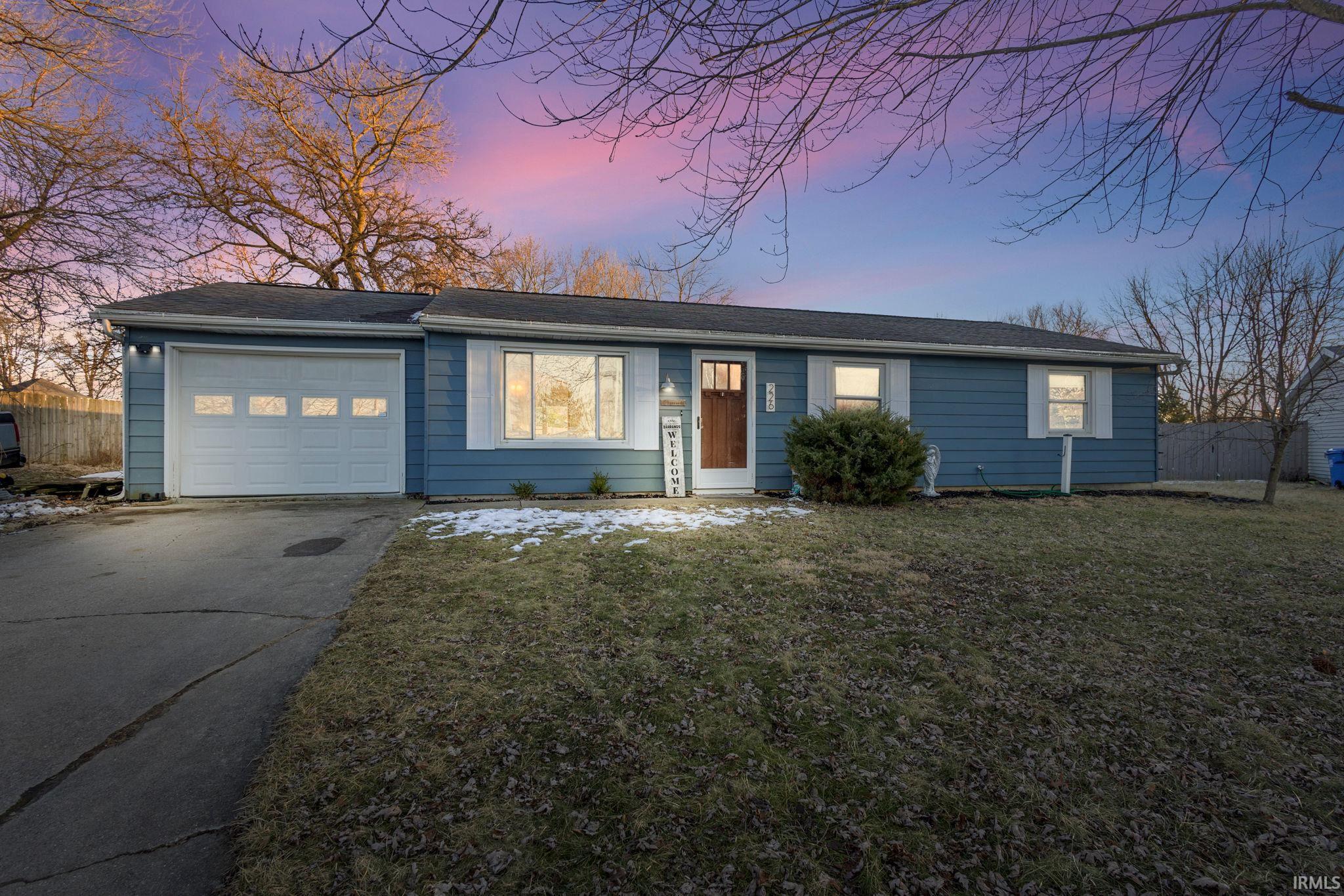 Discover this charming one-story gem in Churubusco, perfectly situated on nearly a quarter-acre lot! This 3-bedroom, 1-bath home boasts an inviting open layout, where the spacious living room connects to the dining area and kitchen, which features a breakfast bar, stainless steel appliances, and convenient outdoor access. Enjoy modern updates, including new flooring, fresh paint, updated ceiling lights, and brand-new wall A/C unit. Large windows fill the home with natural light, while the fenced-in yard, open patio, and utility shed add to its appeal. Plus, an apple tree out front adds a touch of charm. Just minutes from Churubusco Park, the Magic Wand, Blue Lake, and more!
