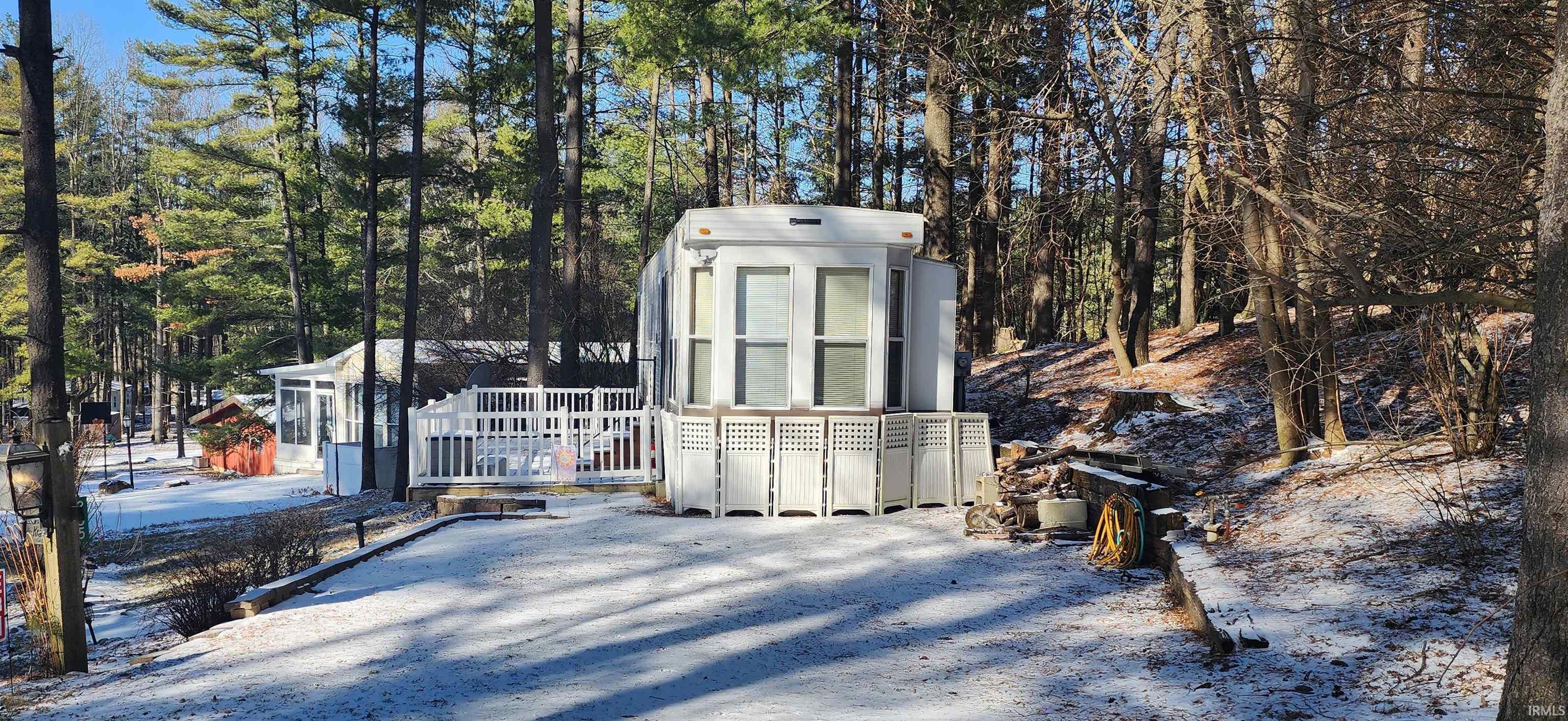 Welcome to Affordable Paradise at "Valley of the Pines"! A seasonal community (April 15 - Oct 15) on Eldo Lake, located just a few hundred feet from Lake James. New central air installed in 2024. Comes complete with all cute furnishings and decor. Natural wood cabinetry in the kitchen and built-in in cabinetry in the bedroom. The living room has a sofa sleeper and a dividing door so that it may be used as a guest bedroom. Enjoy the large open deck or walk a few feet to Lake Eldo activities. Conveniently situated behind the clubhouse. Landscaped third of an acre lot with shed. "The Valley" is golf cart friendly and amenities include fishing, swimming, clubhouse, shuffleboard, basketball, horseshoes, paddle boats, and a playground. Annual dues of $650 include water, trash, and community maintenance.