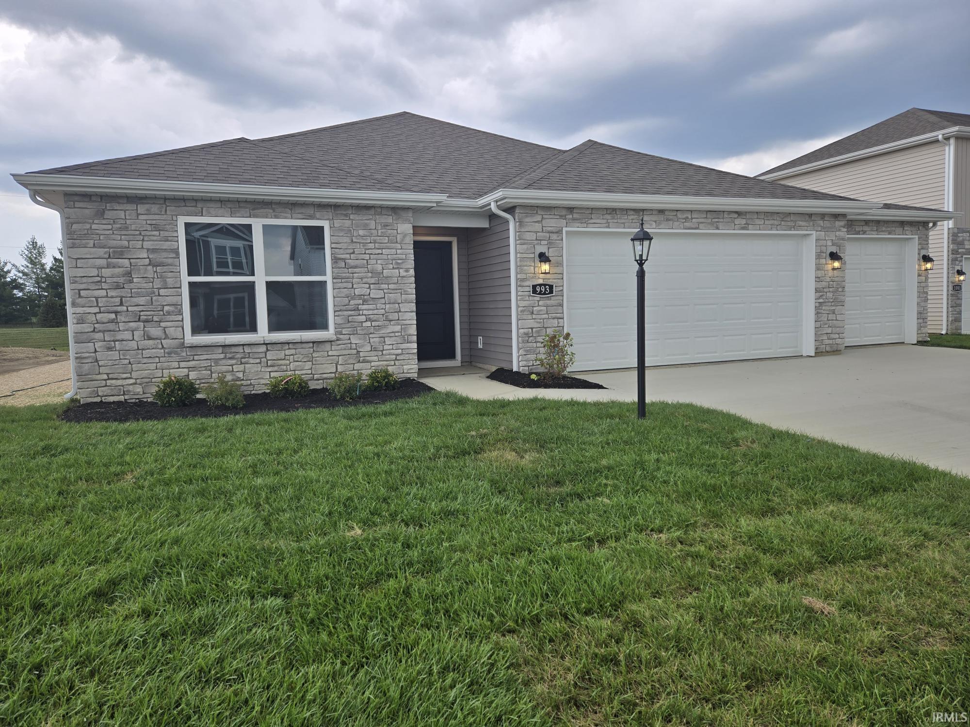 Welcome to the Chatham, a thoughtfully designed ranch residence in New Haven. Located in a private cul-de-sac with no rear neighbors and a 3 car garage!  The inviting open layout make it both practical and welcoming. Every inch of the Chatham kitchen has been carefully curated including stainless steel appliances, Elkins grey cabinets, lyra quartz countertops, low maintenance Mohawk avery LVP, island with bar seating, and a large corner pantry. A cozy yet open living area and casual dining space are nearby for convenience. The primary bedroom features a star studded ensuite walk-in closet and bath with white marble dual sink vanity and walk-in shower. Three additional well-sized bedrooms are designed for privacy and relaxation. A convenient and large laundry room makes laundry day a breeze. Enjoy your rear patio while overlooking a large backyard, sodded yard, and landscaping package, making the home truly move in ready. The exterior is expertly designed with stratus vinyl siding and moonlit trail stone.  Includes Smart Home Technology allowing you to monitor and control your home from your couch or from 500 miles away and connect to your home with your smartphone, tablet, or computer.  With its elegant finishes and efficient layout, this home is ready to meet your need today!  Photos representative of plan only and may vary as built.