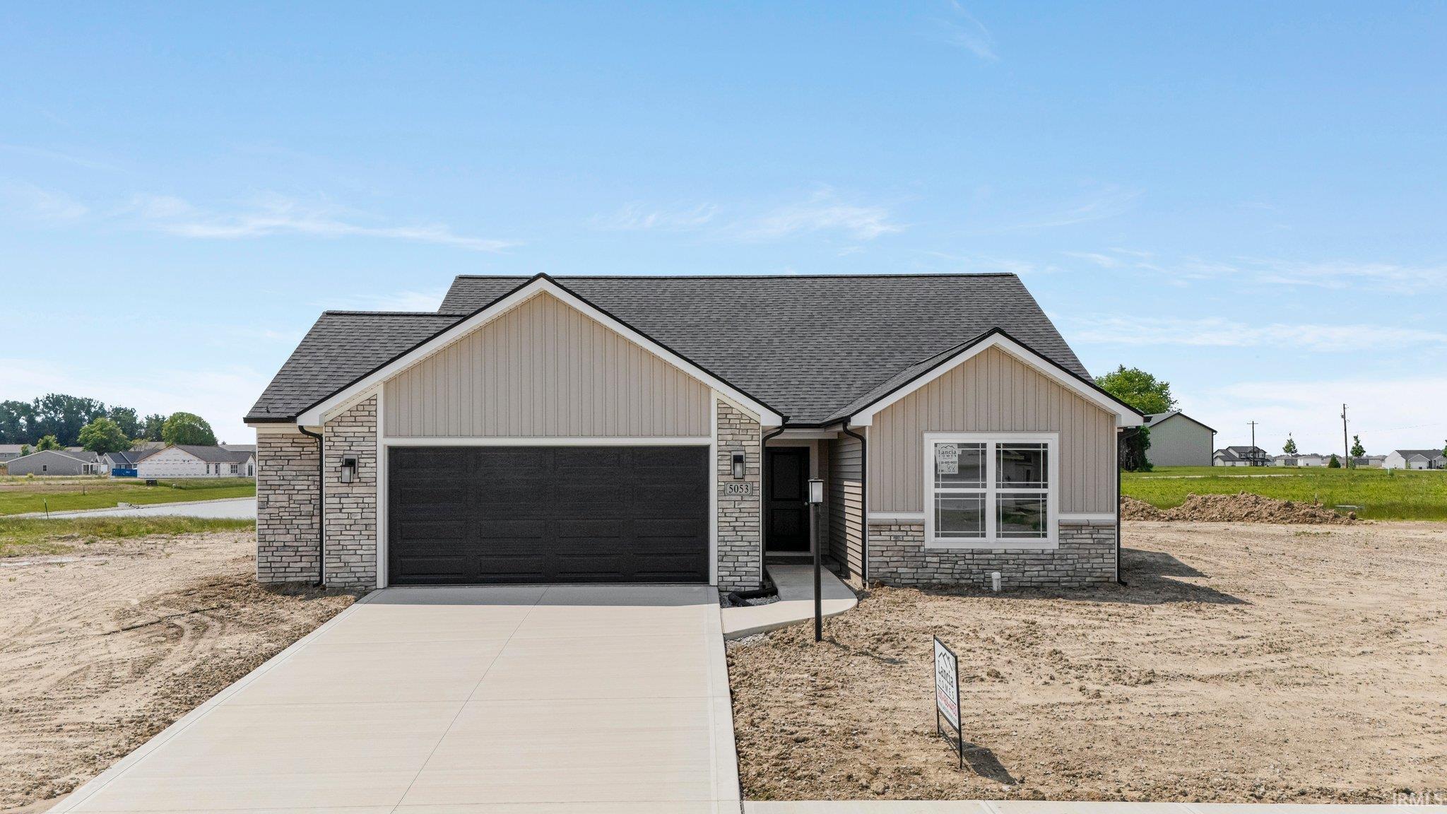 Lancia Homes 1,509 sq.ft. 3 Bedroom, 2 Bath Harper split ranch. 2-Car Garage with 4' extension. Great Room has tray ceiling with 9' center. Open floorplan. 12 x 10 Patio off Nook. Kitchen has breakfast bar on island, quartz countertops, ceramic backsplash, stainless steel smooth-top stove, dishwasher, microwave, long walk-in Pantry, soft close drawers, additional gas line hook-up behind stove are standard. Allowance for fridge, washer and dryer which will be installed after closing. Separate Laundry Room off 2-Car Garage. Owner Suite Bedroom has 9' ceiling, walk-in closet, dual sink vanity and 5' shower. Vinyl plank flooring in Great Room, Kitchen, Nook, Pantry, Foyer, Baths and Laundry. Garage is finished with drywall and paint and attic access with pull-down stairs. Stone, Board n Batten on elevation. Agent to confirm school, NWAC may make changes to school assigned as NW Fort Wayne grows.Home has Simplx Smart Home Technology. (Grading and seeding back yard, 6 shrubs, one 1-1/2' tree and sod in the front yard completed after closing per Lancia's lawn