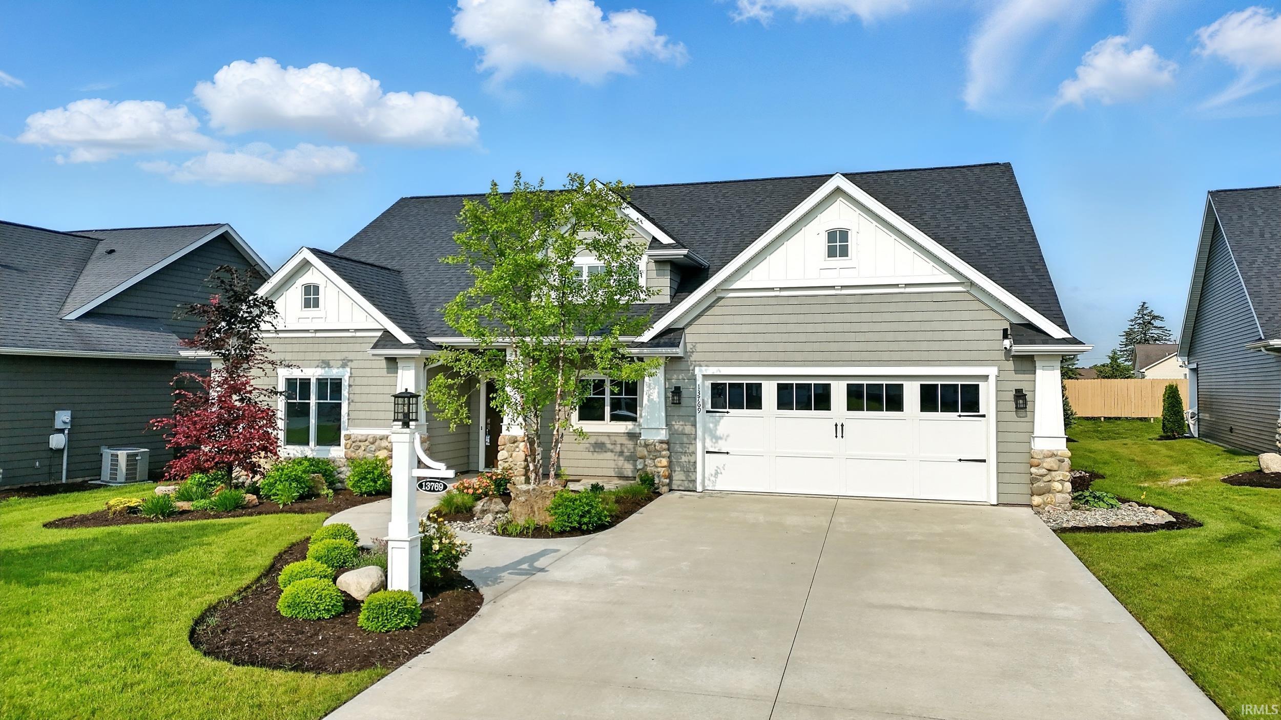 Welcome to this stunning Star-built villa in Northwest Allen’s desirable Cottages of Milagro. With standout curb appeal, professional landscaping, irrigation and a peaceful pond view from the covered patio, this home is made for relaxed living. Inside, you'll find luxury vinyl plank flooring, tall beamed ceilings, and a sunlit bonus space perfect for reading or hobbies. The great room features a cozy fireplace and electric blinds for modern comfort and is open to the gourmet kitchen featuring custom cabinets, a large gas range, double ovens, granite countertops, and a walk-in pantry. Enjoy two primary suites with a spa-like feel The dedicated office can easily serve as a third bedroom. The oversized garage offers great storage and a built-in workspace. Best of all, lawn care and snow removal are included, so you can spend more time enjoying your home and less time on chores. This villa is full of charm, thoughtful details, and premium finishes—an ideal low-maintenance home in one of Allen County’s premier communities.