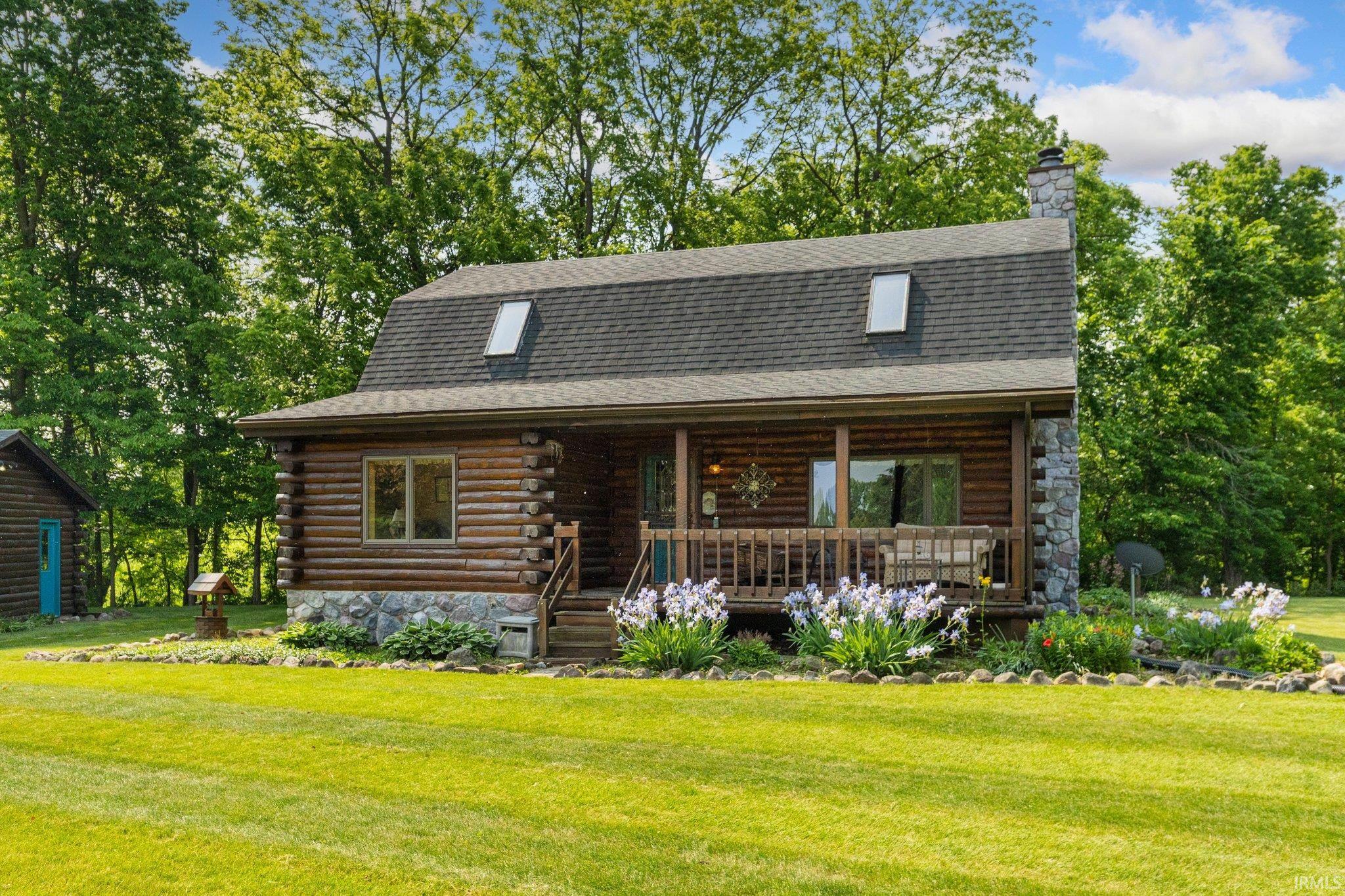 If living in the calm and beauty of nature interest you, and being close to shopping and entertainment, you owe it to yourself to look at this custom log home. Situated on 2.6 acres with a wooded rolling ravine off the back covered porch, many Anderson windows throughout, mother nature provides the scenery and wildlife for tranquility. The high-end rustic interior with the large great room is finished with hardwood floors, a large stone wood burning fireplace in between spacious windows letting in lots of natural light. The large kitchen has porcelain tile floors, current stainless steel appliances and a nice size eating area with the den just beyond. Upstairs is the large primary bedroom with skylights, and vaulted ceilings, large walk-in closet, custom full bath and a second bedroom with the same finishes. The finished basement features a very ample family room for the video and movie enthusiasts, plus an area large enough for a pool table. There is a third bedroom with another full bath, as well, and a very large laundry room. The detached garage is oversized, has 2 bay doors.