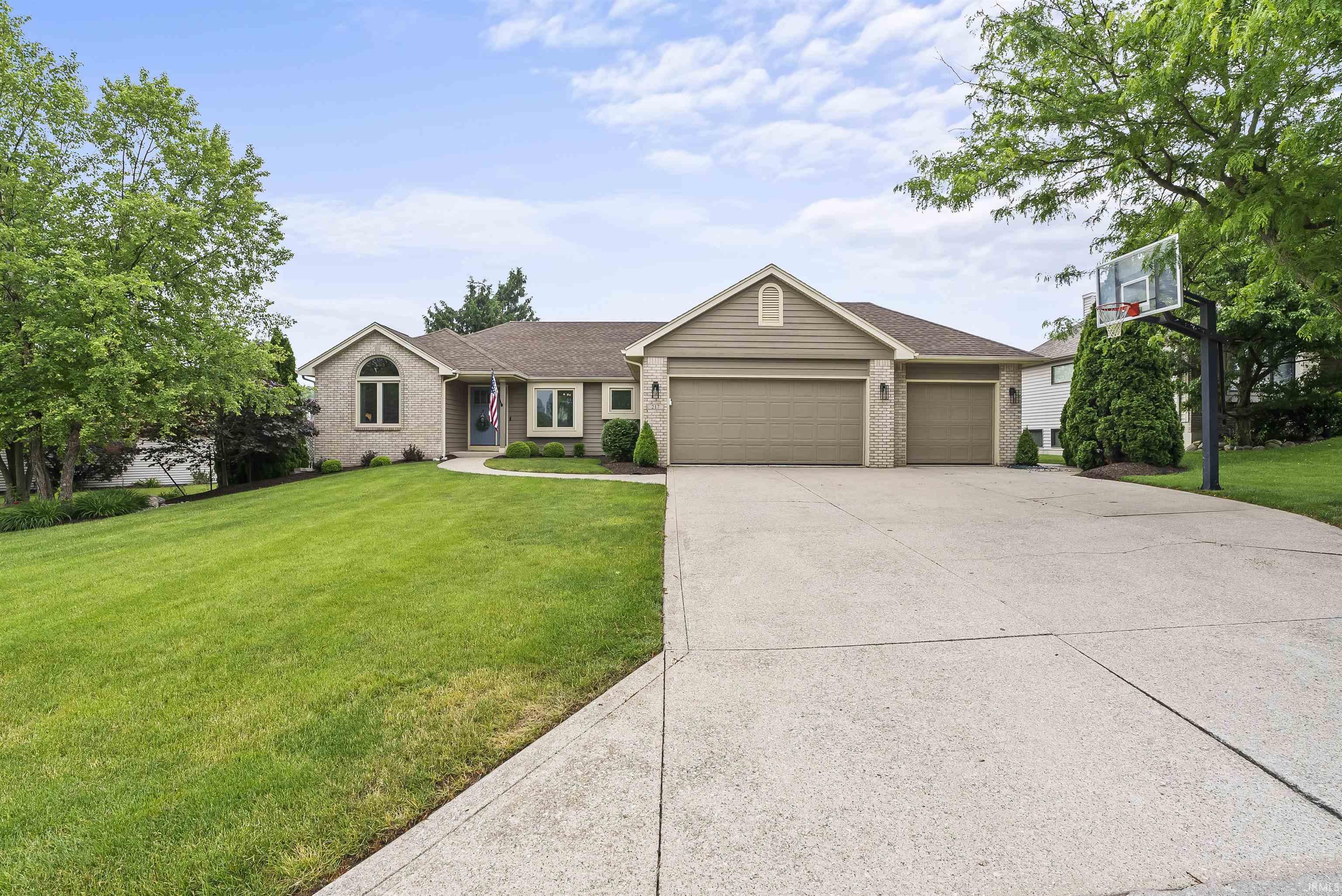 Welcome to this beautifully maintained home located within the top-rated Southwest Allen County School District. This single-story home on a full finished daylight basement offers a spacious and functional split-bedroom floor plan, designed for comfort, privacy, and easy living. As you enter through the inviting foyer, you are welcomed into a large great room featuring soaring cathedral ceilings, a cozy fireplace, and expansive windows that showcase picturesque views of the semi-wooded backyard. The main level includes three bedrooms and two and a half bathrooms. The primary suite offers a private retreat with an en suite bathroom featuring a large 5x5 walk-in shower. The dining area is open to both the foyer and kitchen, creating a warm and welcoming flow for everyday meals or entertaining guests. The kitchen features a functional center island, ample cabinetry, and stainless steel appliances that will remain with the home. The finished basement adds valuable living space with a full bathroom and dry-bar and plenty of room for recreation, entertainment, or a home office. Step outside to enjoy the fully fenced backyard, complete with a wooden deck, beautifully landscaped grounds, and large fire pit area—an ideal setting for outdoor entertaining or quiet relaxation. The oversized three-car garage includes built-in cabinetry for extra organization and storage. Additional storage space is available in the attic and basement. Nestled in the sought-after Shorewood addition and just minutes from shopping, dining, and major roadways- this home offers the perfect balance of comfort and everyday convenience. Schedule your showing today!