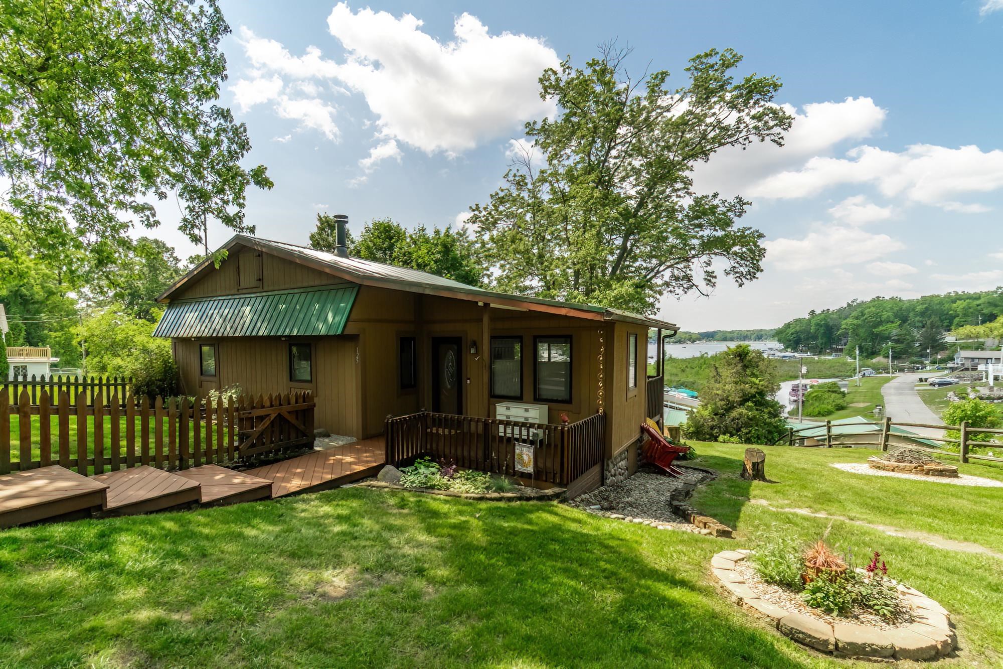 Located on Jimmerson Lake is a picturesque lake home with four lots overlooking the causeway. With 30ft of dock space (marked red in pictures) to park your boat, an air conditioned “she shed” for extra space or a place to hang out and large garage, what more could you ask for? This property hosts a home surrounded by trees and a partially fenced in yard. Out front is a large deck, shaded and cozy. The house itself is modern and quiet with a fireplace, washer and dryer, a split system heat/ac units and plenty of room to spread out. 2 bedrooms, 1 bath, large kitchen and living room make this house a home. The landscaping is simplistic, yet beautiful with a diverse selection of plants. Jimmerson is part of the Lake James chain (2000 acres worth of lake), meaning you can ski from dawn until dusk!