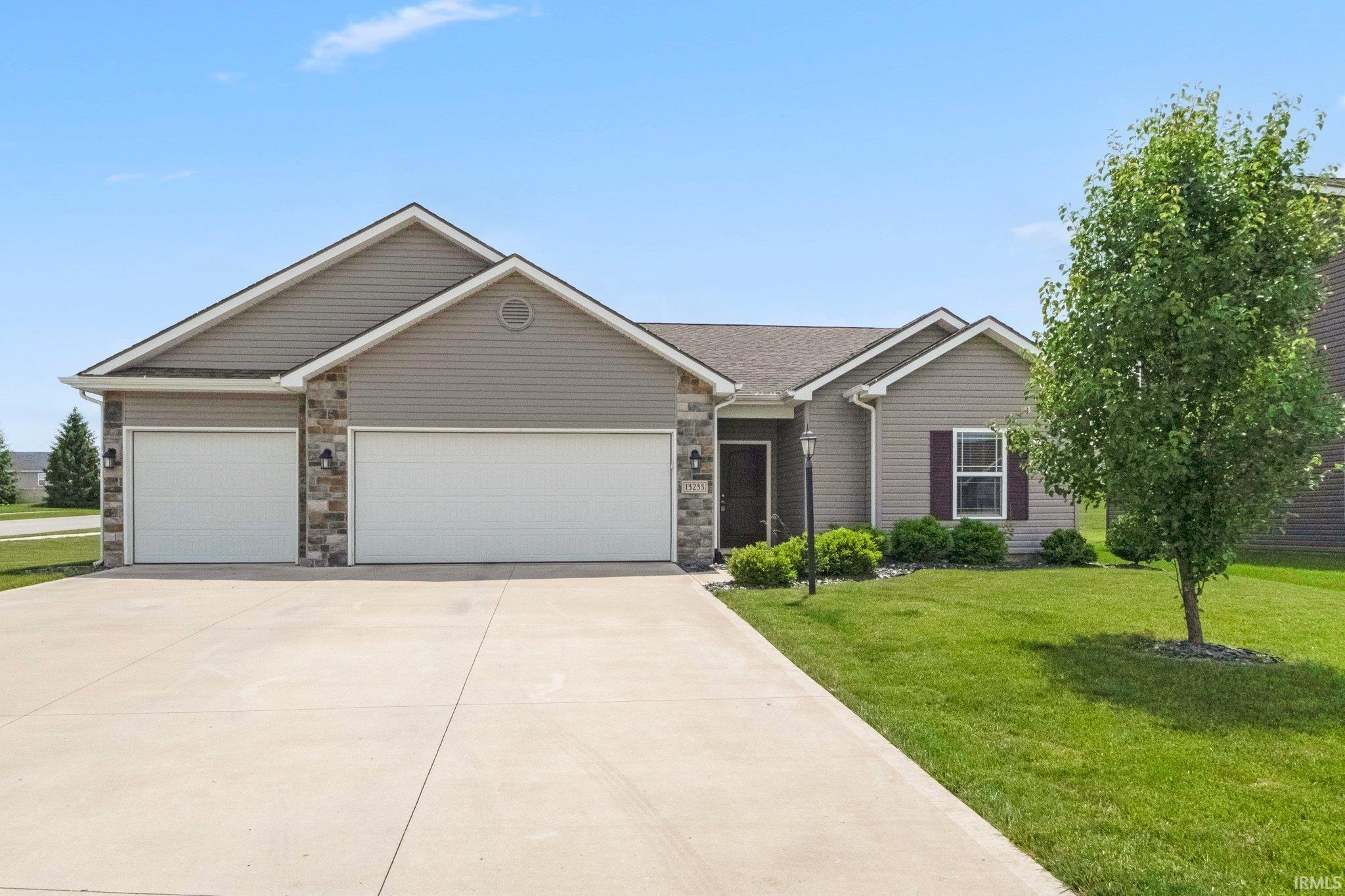 Welcome to this inviting one-story home in the highly desirable Southwest Allen County district! Thoughtfully designed for comfortable living and easy entertaining, the open floor plan flows from the spacious living room into the dining area and kitchen, featuring easy outdoor access, stainless steel appliances, a kitchen island, and a breakfast bar. Enjoy three generously sized bedrooms and two full baths, including a private ensuite with a dual sink vanity and walk-in closet. Step outside to relax on the open patio overlooking the expansive backyard, and take advantage of the 3-car attached garage. Located near Jefferson Pointe Shopping, Lutheran Hospital, dining, and entertainment!