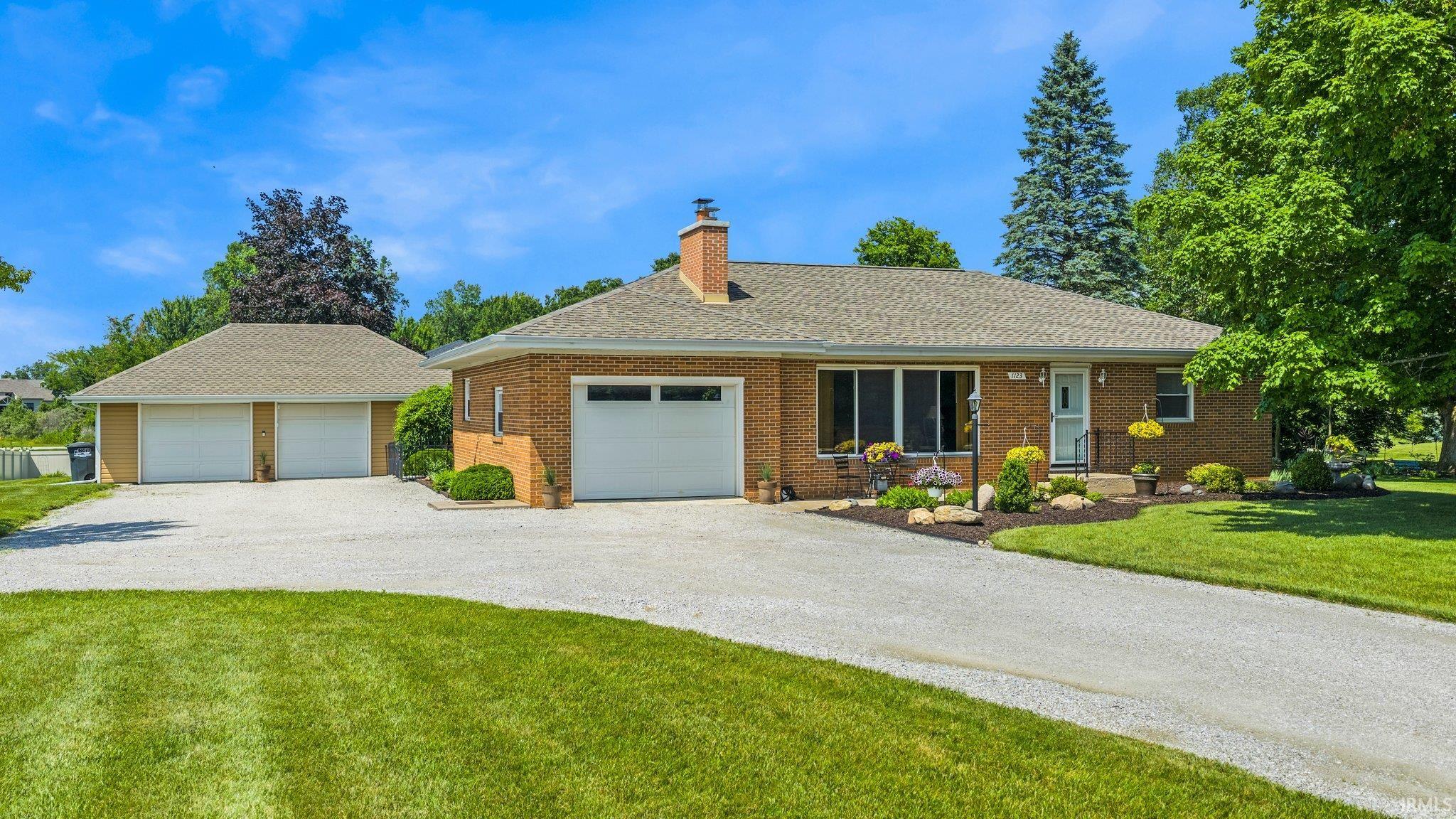 Enjoy your morning cup of coffee from the Gazebo at this stunning ranch home that is situated on a spacious one- acre lot and features both an attached one-car garage and a oversized detached two-car garage, Ideal for hobbies and storage. Inside you will find 3 bedrooms, 2 bathrooms and a full size basement. The basement has room to entertain and have a dedicated workout area. The kitchen boasts Harlan cabinets, LVP flooring and stainless steel appliances. The outdoor area is adorned with manicured landscaping, flower and plant arrangements along with beautiful trees. Recent upgrades include a new roof in May 2025, New Water heater and softener coming 6/30. A/C unit 5yrs old . NO HOA Association or Dues.