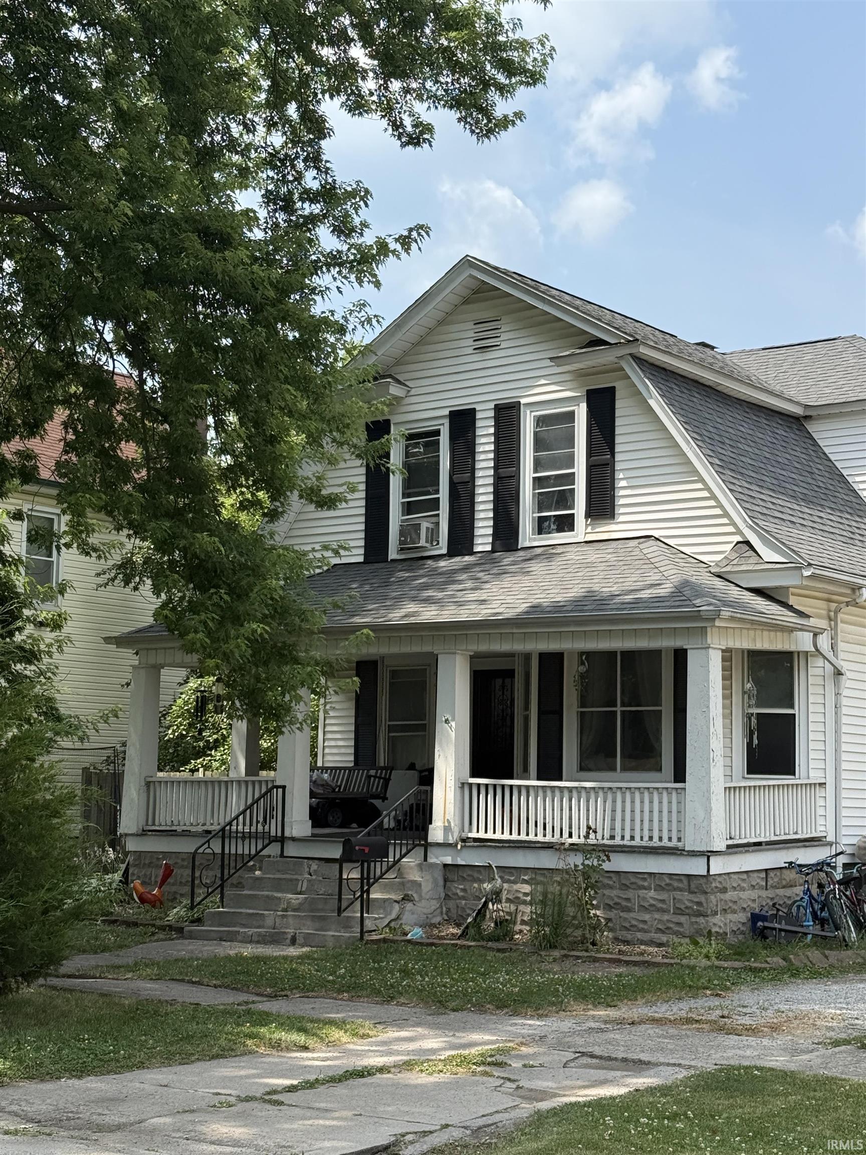 Welcome Home! Check out this beautiful two-story home with large inviting covered front porch. Enter this home and be greeted by a large foyer featuring original woodwork, both the dining room and living room have original hardwood pocket doors that still function. The main floor features a half bath for both convivence and comfort for your family and guests. Upstairs you'll find a full bathroom and three large bedrooms. Off the back of the home is a double level deck and above ground pool. The backyard is fenced, perfect for pets or little ones. This property also features not one but two storage sheds. Be sure to schedule a tour today!
