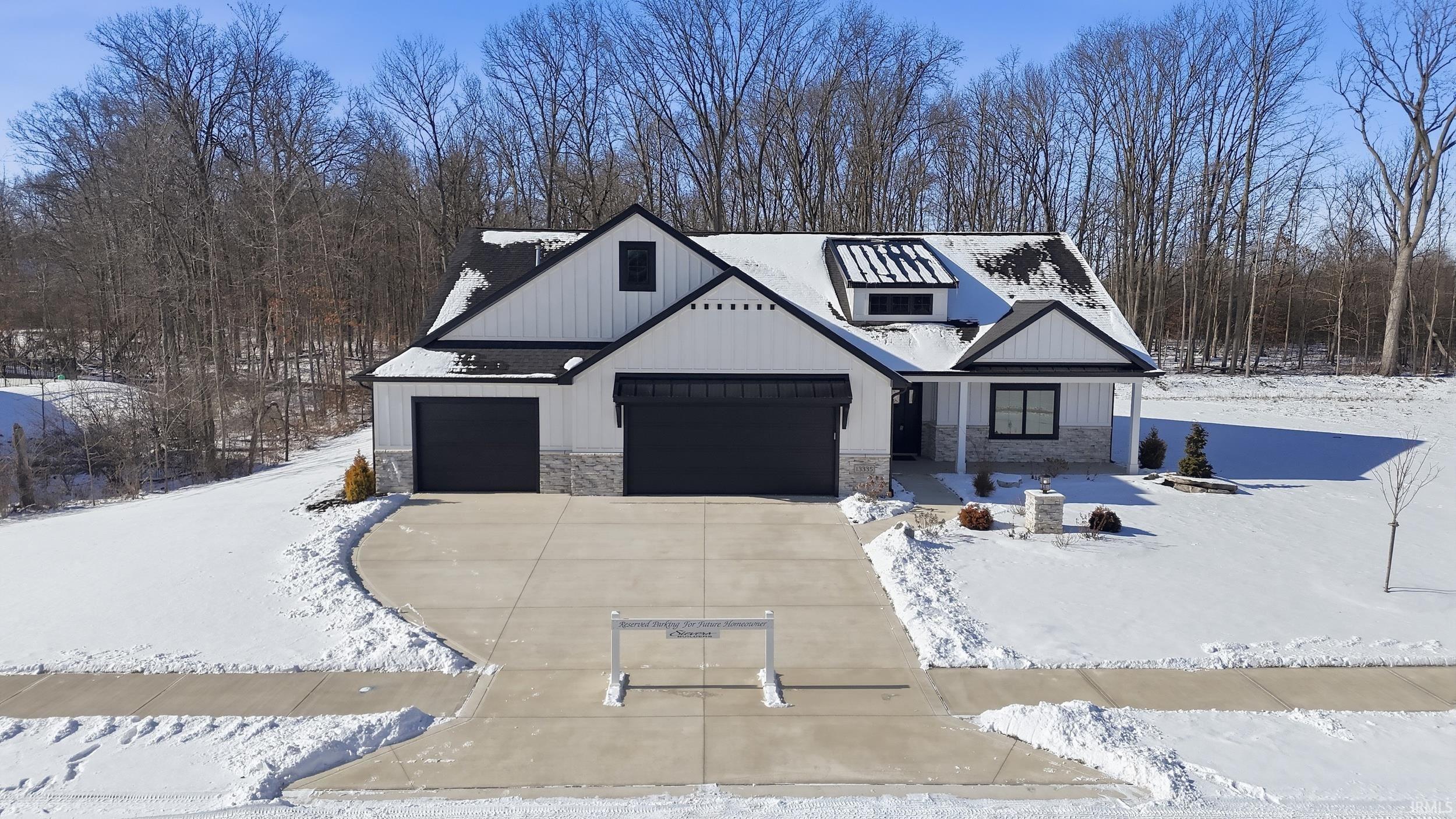 Brand New Construction with elevated finishes and thoughtful storage! Welcome to 13335 Passerine Blvd. This stunning split 3-bedroom, 2.5 bathroom home by Sievers Builders offers open concept living with 9' ceilings throughout. The open floor plan allows the front entry, great room, kitchen and dining to flow together for convenience and comfort. The great room boasts a tray ceiling with large poplar beams, a 42" fireplace with black granite, accented with built in cabinetry on both sides with floating shelves. Five-light barn doors open up to a charming sunroom complete with oversized windows with natural light that looks onto wooded backyard and patio. The kitchen and dinette area features beautiful painted white maple cabinetry with granite countertops and stylish backsplash with a grand-oversized island with quartz countertop. Stainless appliances, vented hood and pot filler complete this stunning kitchen. The spacious primary suite has a tray ceiling with crown molding and light fan combo and large windows for natural light. The striking, primary spa-style bath boasts an oversized tile walk-in shower with rain head and many other features. Dual vanities with quartz top, 2 linen closets and a toilet closet complete this bath. Adjoining is the grand primary walk-in closet with abundant custom shelving and hanging space. The generously sized guest bedrooms include large closets and twin windows. The sizable guest bath hosts dual vanities w/ granite top, 6' tub/shower, linen closet and tiled floor. The expansive laundry room is complete with washer-dryer hook ups, wall cabinetry, large mop sink and storage closet. Home includes oversized 25' deep 3-car garage. Oversized pull down stairs with attic storage above. Home has stone-accent exterior, including light post, board and batten styling, landscaping, yard and irrigation. Also, a ten-year structural warranty completes this move in ready home!