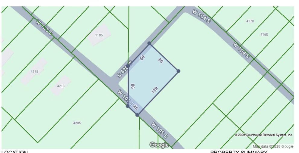 On East side of 420 W, North side of W 105 s, corner of open field